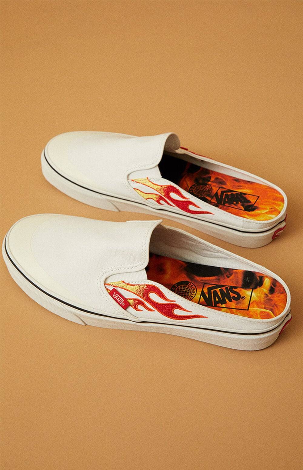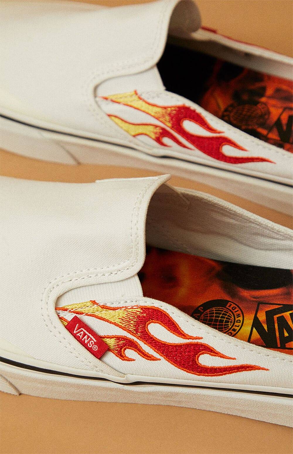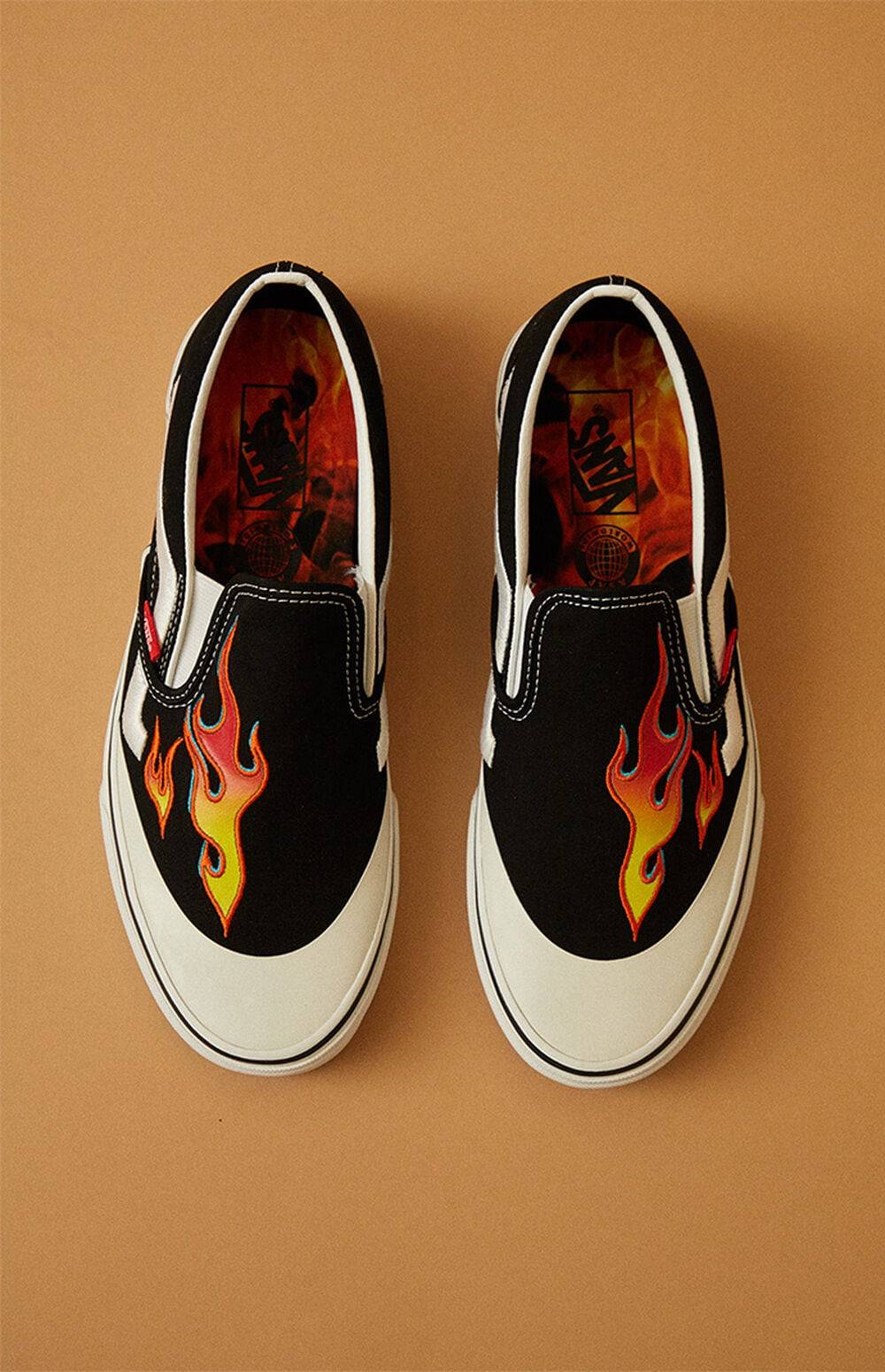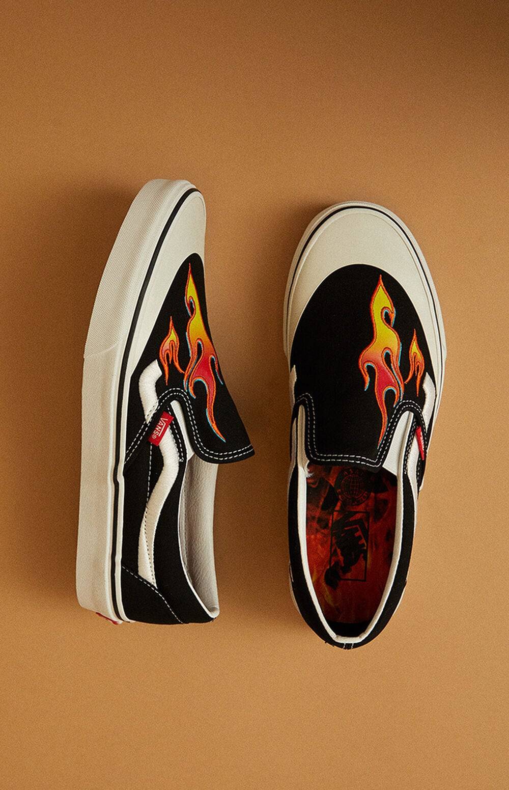 Trong hai mẫu giày, hình dạng của ngọn lửa bạc trước đó đã được thay đổi, yếu tố cổ điển được thể hiện tốt nhất với nhiều sự góp ý chỉnh sửa họa tiết từ chính nam rapper A$AP Rocky, được trình bày với tông màu chuyển sắc cam-đỏ đặc trưng hơn. Slip-On cổ điển vẫn được thể hiện bằng hai màu đen và trắng. Rocky tô điểm ngọn lửa ở bên ngoài và thể hiện họa tiết ngọn lửa thông qua thêu tay và in offset. Đồng thời, các sọc bên Sidestripe vốn "thuộc về" Old Skool, Sk8-Hi,…nay được thể hiện trên chính đôi VANS slip-on mang đến nhiều trải nghiệm khác biệt…