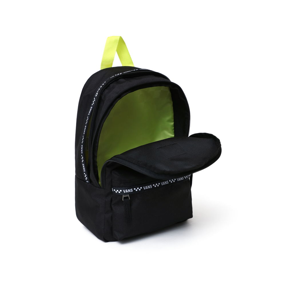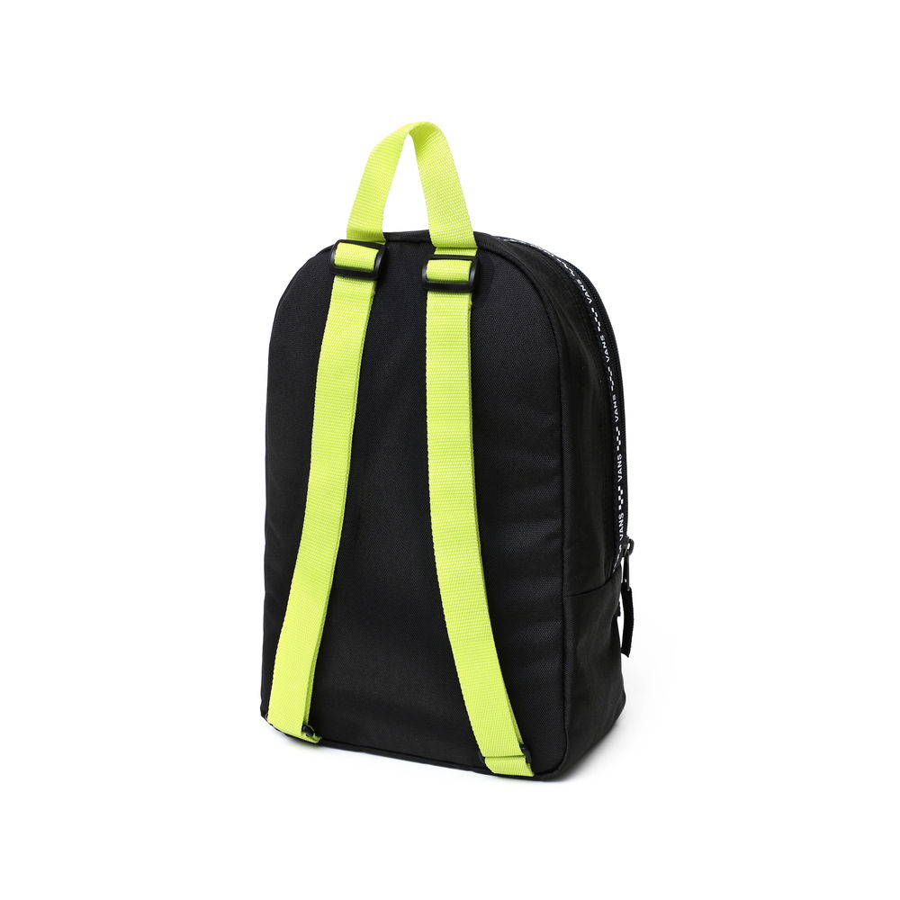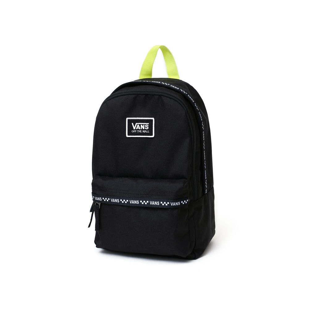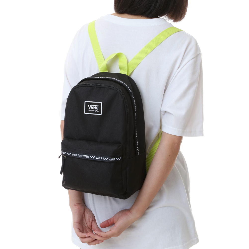 VANS BOUNDS PRETA BACKPACK BLACK mạnh dạn được VANS điểm nhẹ với logo VANS mặt trước được in nổi bật, tạo điểm nhấn độc đáo cho chiếc balo. Thêm vào đó là dãy checkerboard chạy dọc theo chiều ngang của balo hài hoà cùng với sắc xanh chuối được thêm vào một cách cố ý ở phần quai đeo tay cầm.