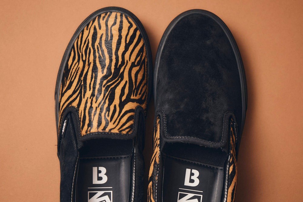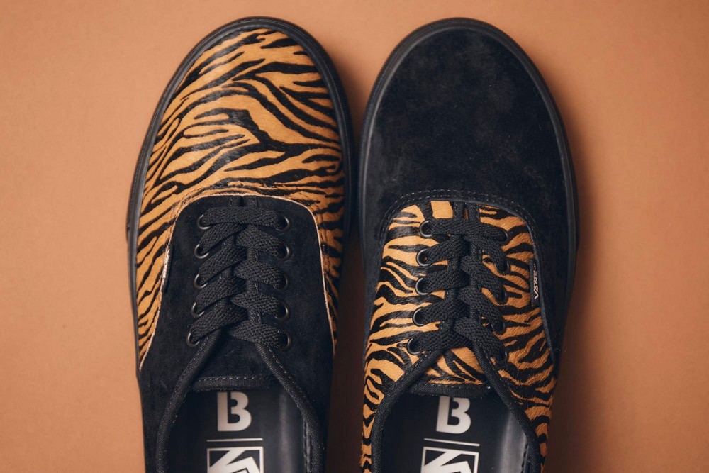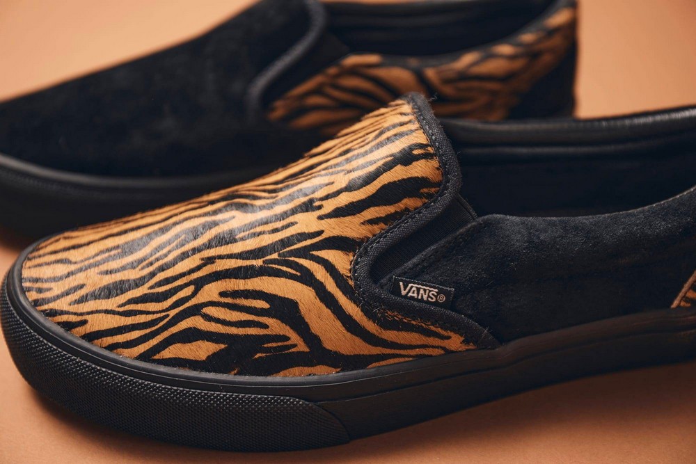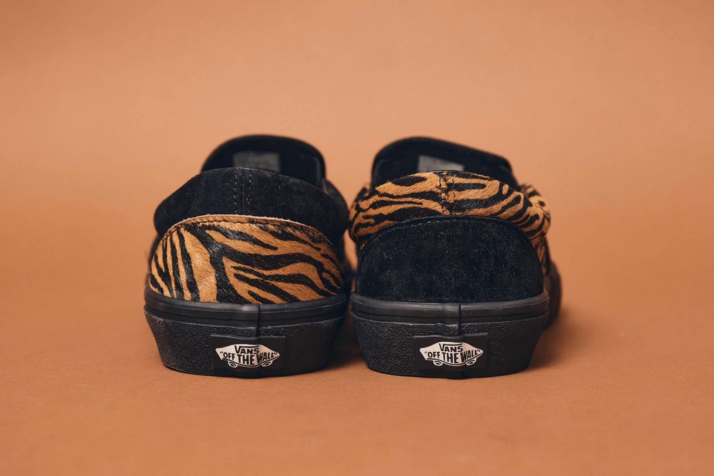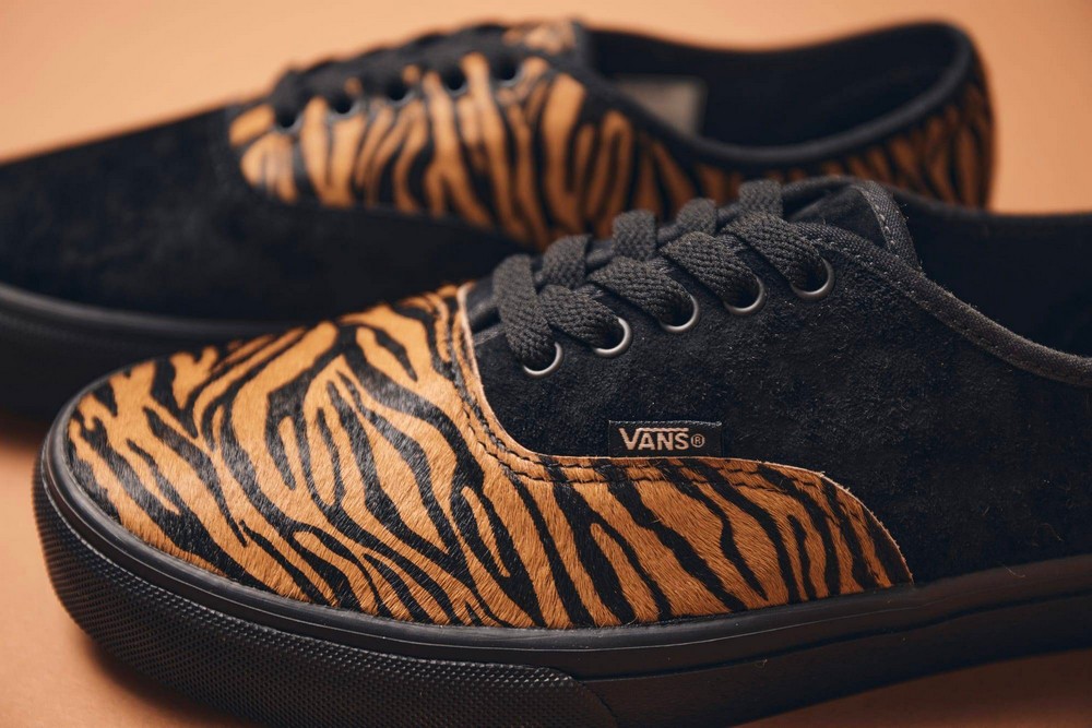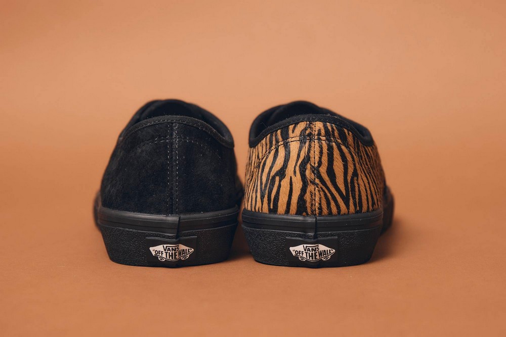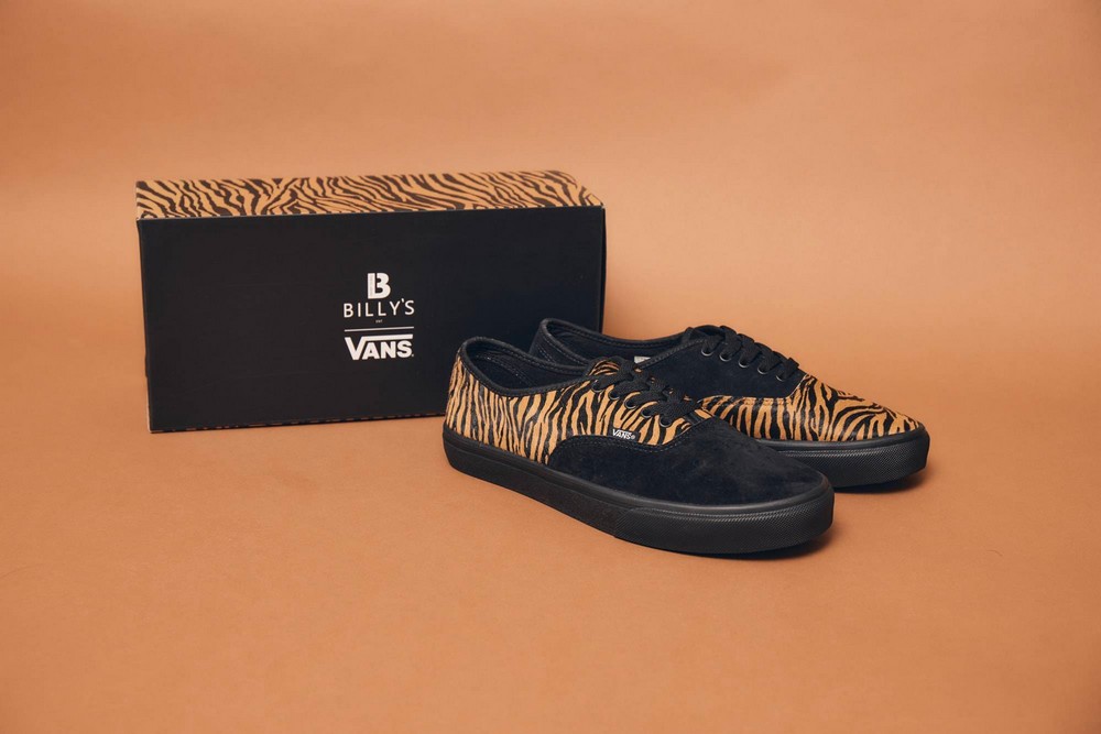 Họa tiết hoang dã của "da hổ" được thực hiện trên đường viền cổ điển của Authentic và Slip-On. Để phục hồi tốt hơn kết cấu "lông" thật, BILLY'S cũng sử dụng chất liệu lông ngựa "Pony Hair" làm đế kết cấu, phần in hình da hổ với hai màu sắc đen và cam được thể hiện trên thân giày, các lớp da lộn màu đen cùng họa tiết nổi bật, thể hiện thuộc tính cao cấp mạnh mẽ.