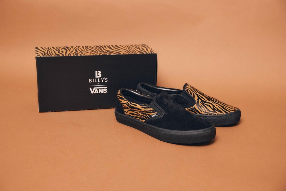 Để kết hợp với phong cách sang trọng hoang dã tổng thể, BILLY'S cũng tạo ra những đường khâu và đế bằng da cao cấp cho hai đôi giày. Logo chữ "B" đơn giản của BILLY'S được tô điểm trên miếng da, điểm nhấn là Logo Vans.