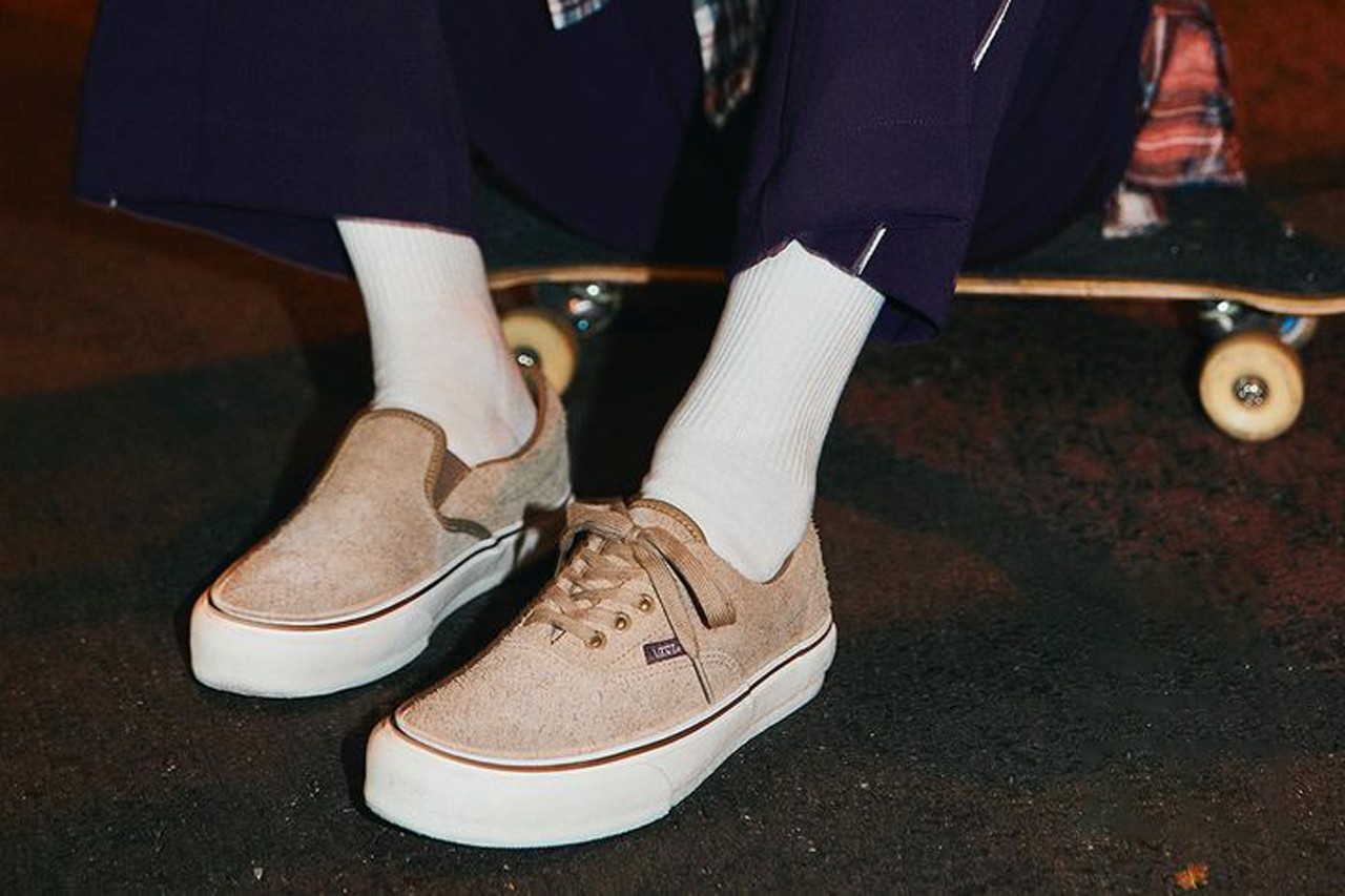 Trong lần hợp tác mới nhất của họ, nhung vẫn chính là vật liệu quan trọng nhất để tạo nên một hình ảnh cũ những mới. Xuất hiện đặc biệt dưới hình bóng Era và Slip-On mang tính biểu tượng của VANS, bộ đôi đã kết hợp với nhau để tạo ra một đôi giày thể thao hai trong một. Đây được đánh giá là một sự sáng tạo đột phá, khi trong cùng một đôi giày, lại xuất hiện cùng lúc hai kiểu dáng. Khai thác sự tôn thờ của NEEDLES đối với sự bất đối xứng, chiếc giày bên phải ủng hộ phong cách Slip-On trong khi chiếc giày bên trái được buộc dây theo cách trình bày điển hình của Era. Hạ cánh trong các phối màu “Taupe” và “Black”, cả hai cặp đều mang đến một cách tiếp cận tối giản nhưng độc đáo.