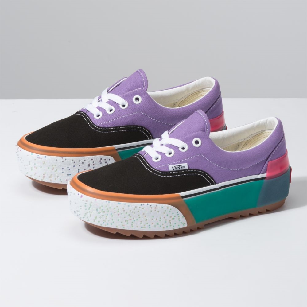 Giày skate nguyên bản của Vans, Era, khởi động bộ sưu tập ba mảnh và sử dụng cấu trúc đa bảng gốc với mũ giày bằng vải bông có sẵn trong hai màu. Mỗi mô hình được nhấn với một nền tảng trên; colorway bảng trắng / họa tiết checkerboard nhìn thấy một gót chân bàn cờ quá khổ bên dưới và đế ngoài mờ xếp chồng lên nhau. Phần thứ hai của Era sử dụng mũ lưỡi trai hai tông màu tím và đen với đế ngoài màu xanh biển và màu xanh mờ được tạo điểm nhấn bằng một chiếc ốp lưng hoa giấy quá khổ.