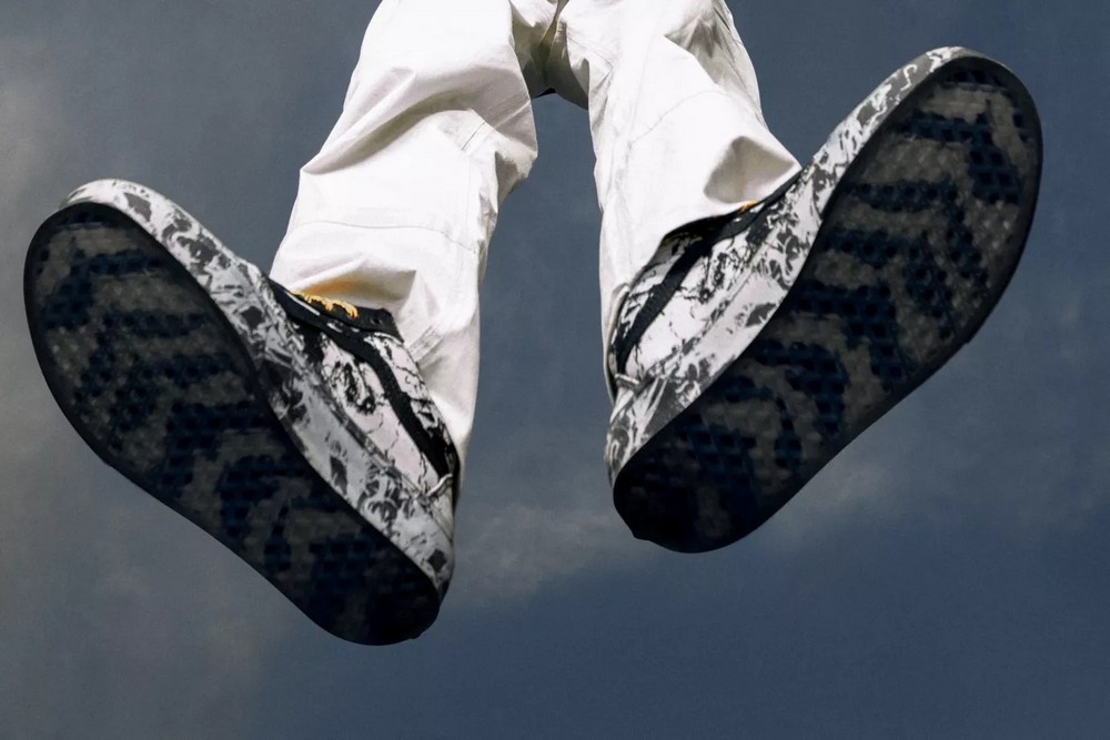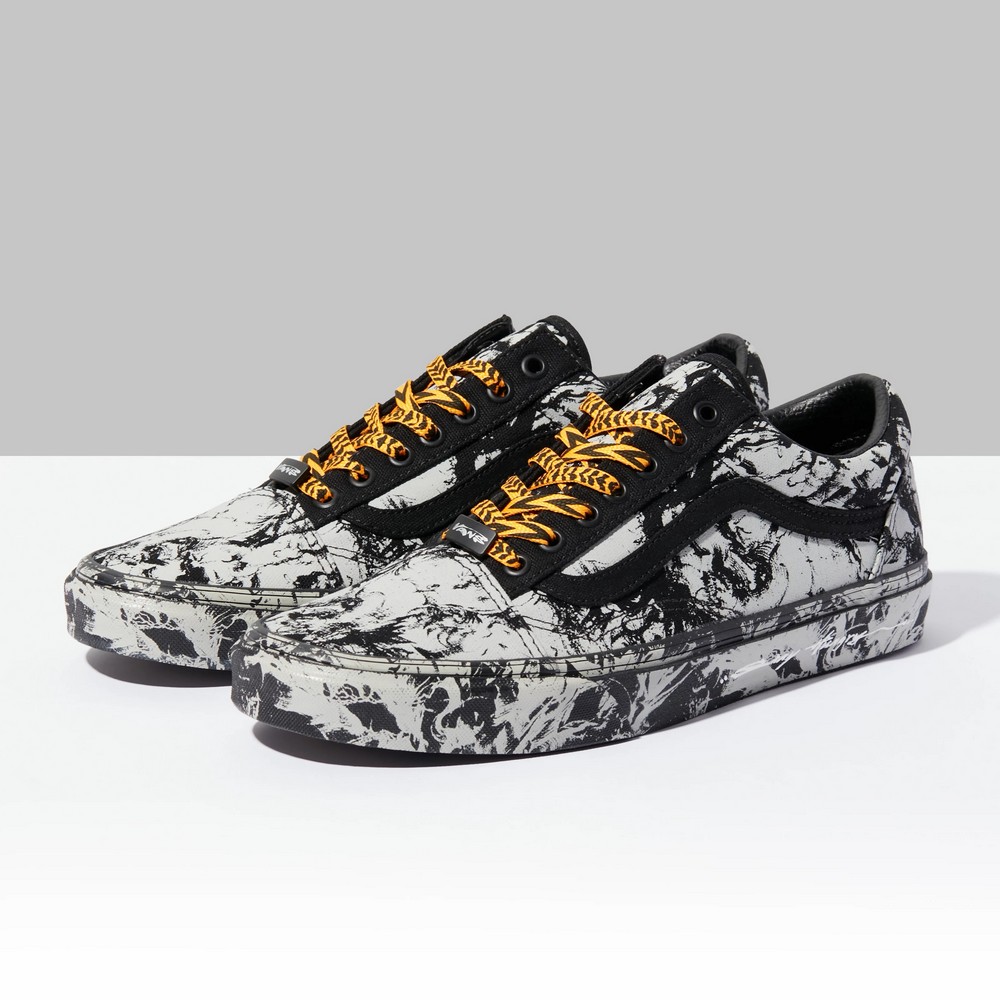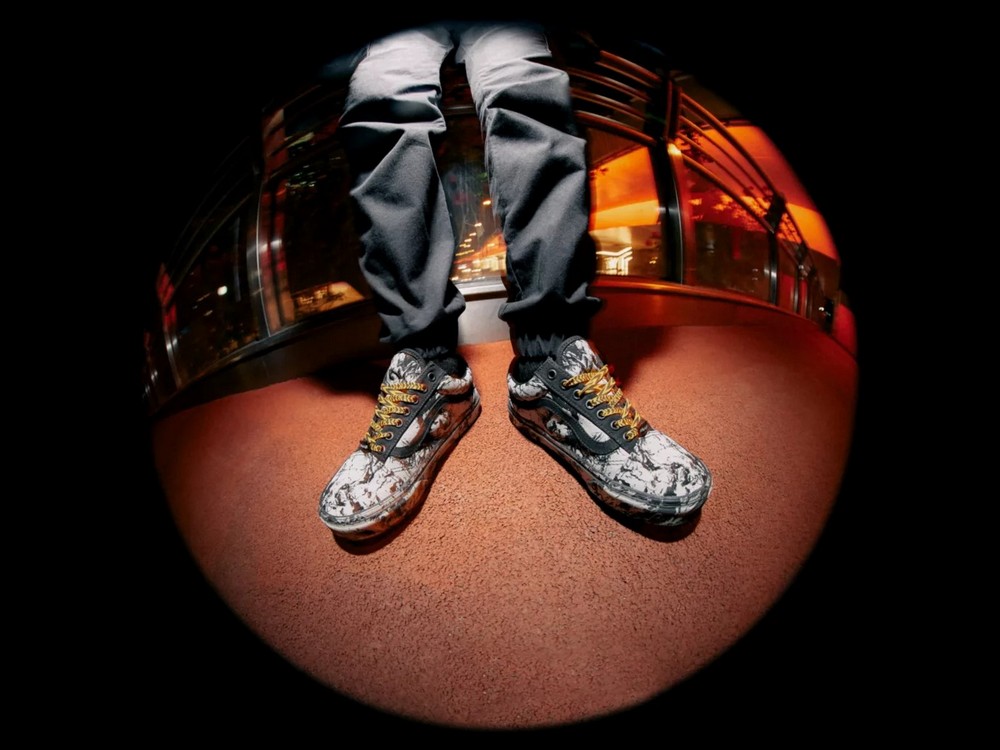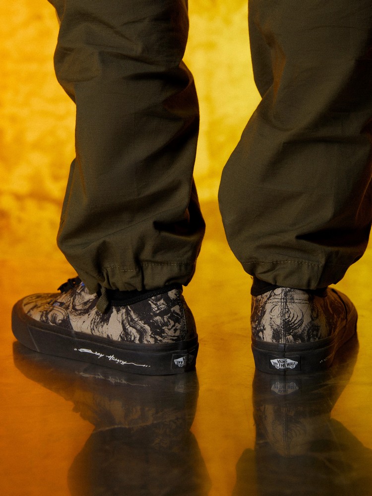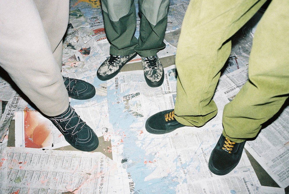 Với hình bóng Old Skool – VANS sử dụng hai kiểu dáng khác nhau - đôi đầu tiên sử dụng da lộn màu đen cho phần upper của giày, phù hợp với họa tiết do Chen Yingjie vẽ tay. Cặp Old Skool thứ hai có sơn mực đặc trưng và khẩu hiệu "Stay Hungry".