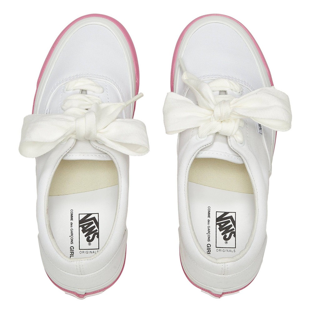 COMME des GARÇONS Girl, chi nhánh quần áo nữ của thương hiệu thời trang nổi tiếng COMME des GARÇONS Rei Kawakubo, đã chiếm được tình cảm của nhiều cô gái với phong cách nữ tính. Và chính vì là thương hiệu dành riêng cho phái đẹp, màu hồng của hãng trở nên biểu tượng và đặc trưng. Gần đây nhất, COMME des GARÇONS Girl ra mắt bộ sưu tập chung đầu tiên với Vans Vault với sự hiện diện của sắc màu ngọt ngào này. Cả hai cho ra mắt một series chung mới, theo dáng giày cổ điển của OG Era LX, và tung ra một đôi giày chung mới với dải ruy băng "Ribbon" làm yếu tố cốt lõi.