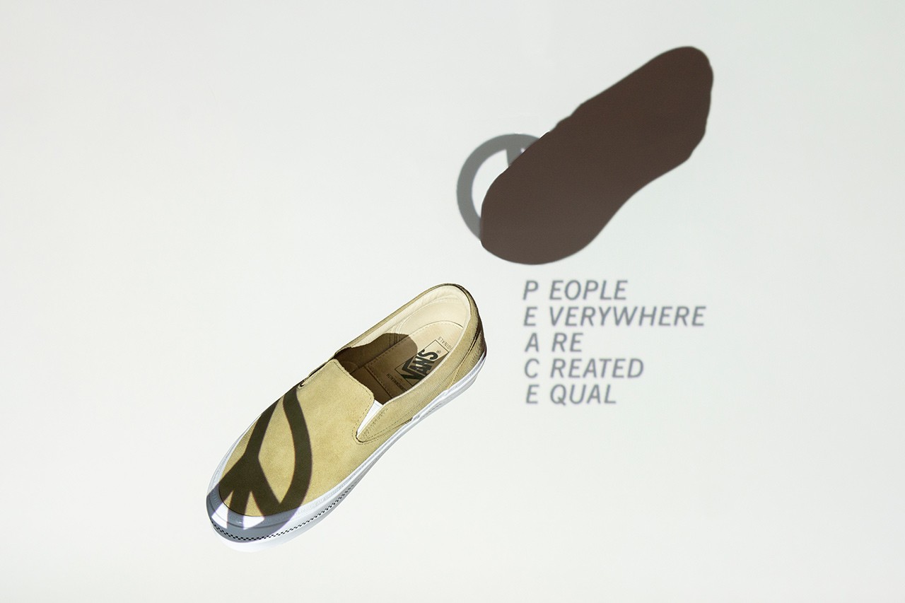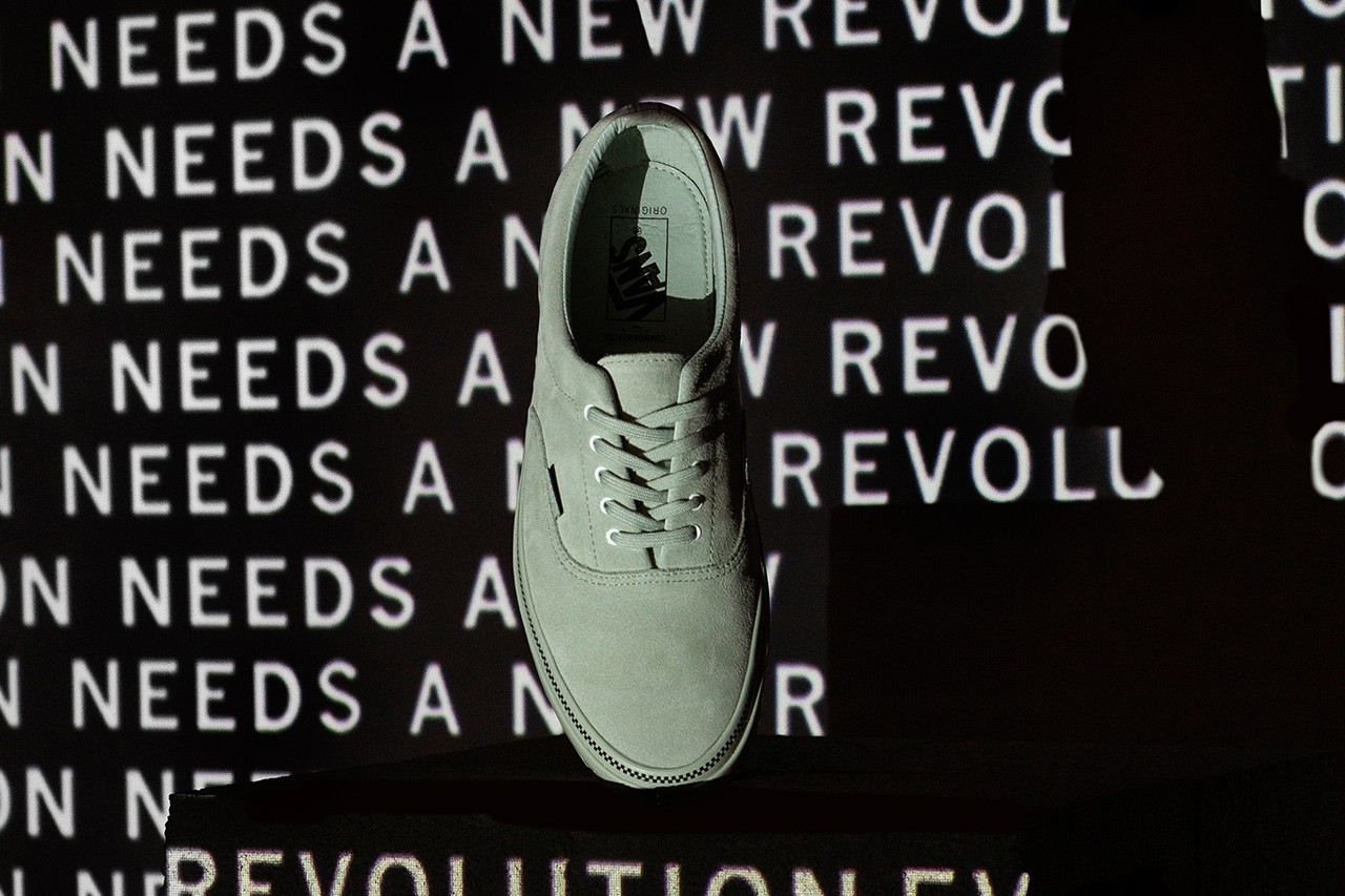 Mặc trang phục bằng da lộn cao cấp, Era đi kèm với phối màu của sa mạc Sage, trong khi Slip-on có màu sắc trong một chiếc Lark Tan., Phiên bản Era lặp đi lặp lại trong một màu sắc đơn sắc, nổi bật với midsole có độ bóng cao nổi bật. câu nói mà mọi thế hệ đều cần một cuộc cách mạng. Các kiểu dáng đều sử dụng một sọc cáo, với nhiều nhãn hiệu Commonwealth được đánh dấu trong suốt. Đặc biệt hơn, sự hợp tác sẽ loại bỏ đế bánh quế Vans thông thường để đổi lấy một đế khác đặc sắc hơn.