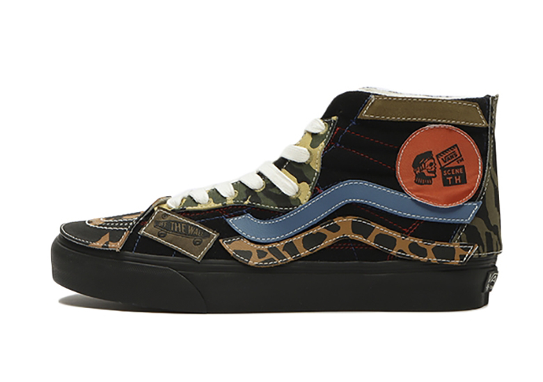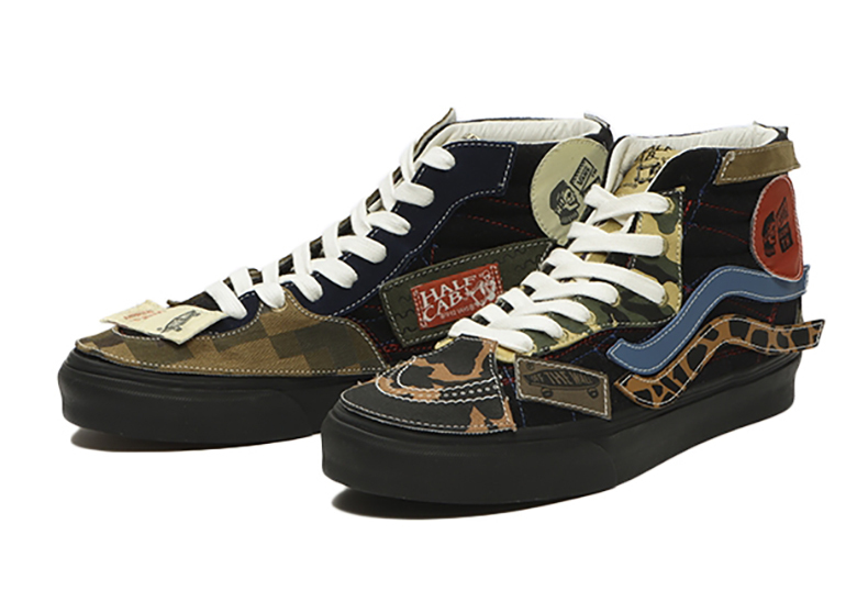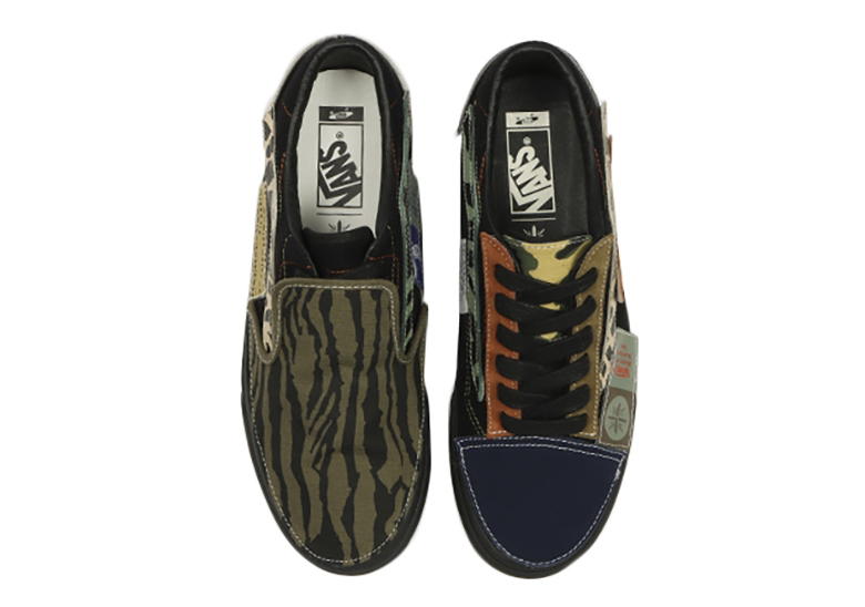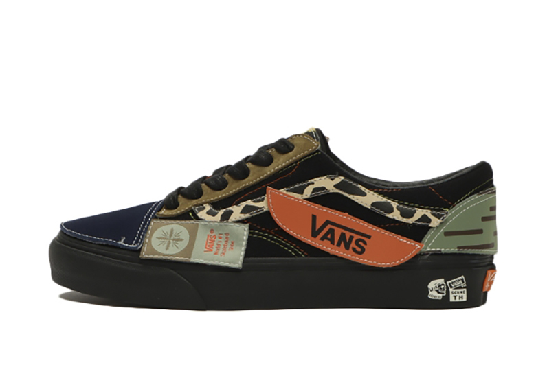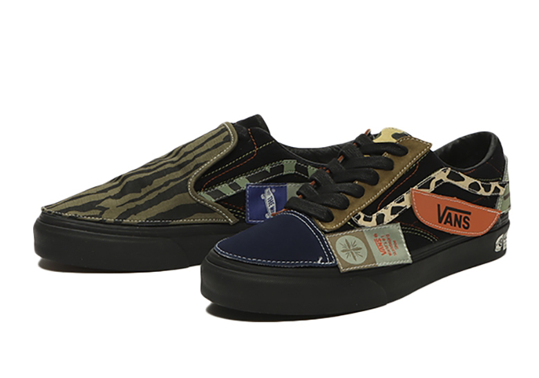 Cả hai mẫu sản phẩm Vans DIY Black-Based được xây dựng độc đáo bởi các miếng dán đen kết hợp đường khâu trắng tương phản, đây cũng là cơ sở tạo điều kiện cho nhiều thiết kế sáng tạo khác trên sản phẩm. Lấy màu đen làm nền, thiết kế đặt xen kẽ lên đó các mảng vải “lỗi” với sự phối hợp từ nhiều màu sắc khác như màu beiges đậm, màu xanh lá cây, màu đỏ và màu xanh lam.