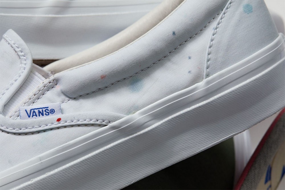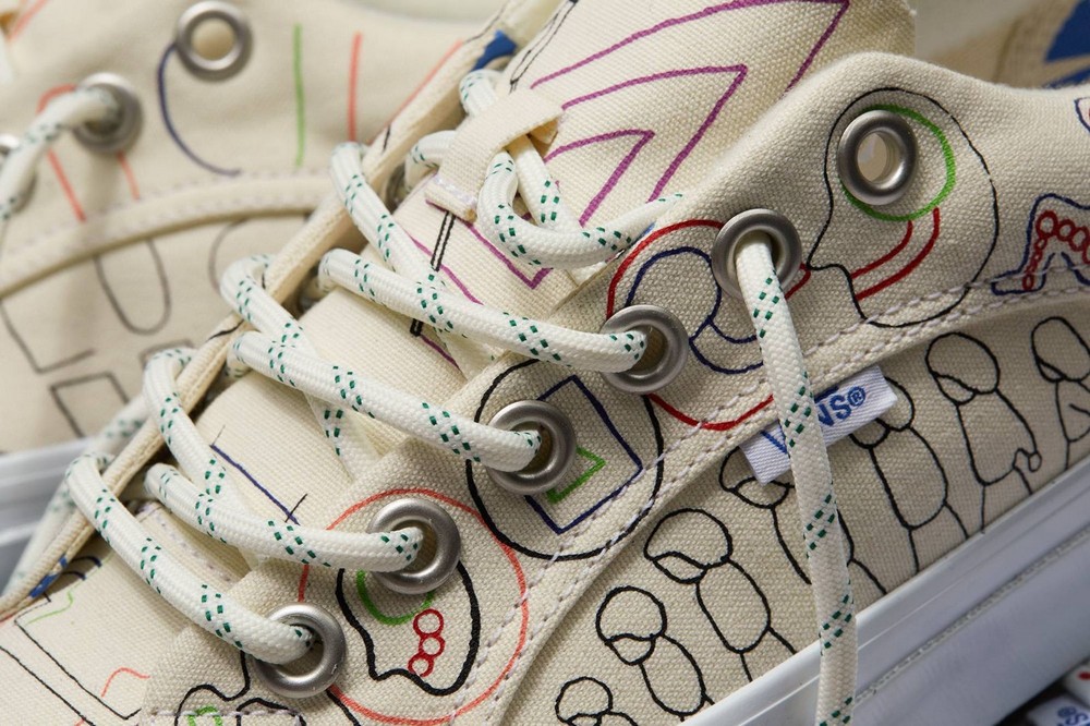 Mỗi đôi giày trong bộ sưu tập đại diện cho một khía cạnh khác nhau trong sự nghiệp của McFetridge, cho dù thông qua nghệ thuật hay kinh nghiệm sống của chính anh ta. “Đôi giày là sự khám phá nhiều loại vật liệu và quy trình,” anh ấy nói. “Tôi muốn bộ sưu tập phản ánh các khía cạnh của studio, phong cách hoặc sở thích cá nhân của tôi và lịch sử cá nhân của tôi.” Lấy ví dụ như chiếc OG Authentic LX, có một loạt hình minh họa về những thứ cần thiết hàng ngày của McFetridge: một chiếc áo phông màu mà anh ấy thường vẽ, chiếc túi tote hàng chục năm tuổi của anh ấy, chiếc quần yêu thích của anh ấy, và tất nhiên, một đôi VANS mà anh ấy đã mang trong đó Nhật Bản khi còn bé.