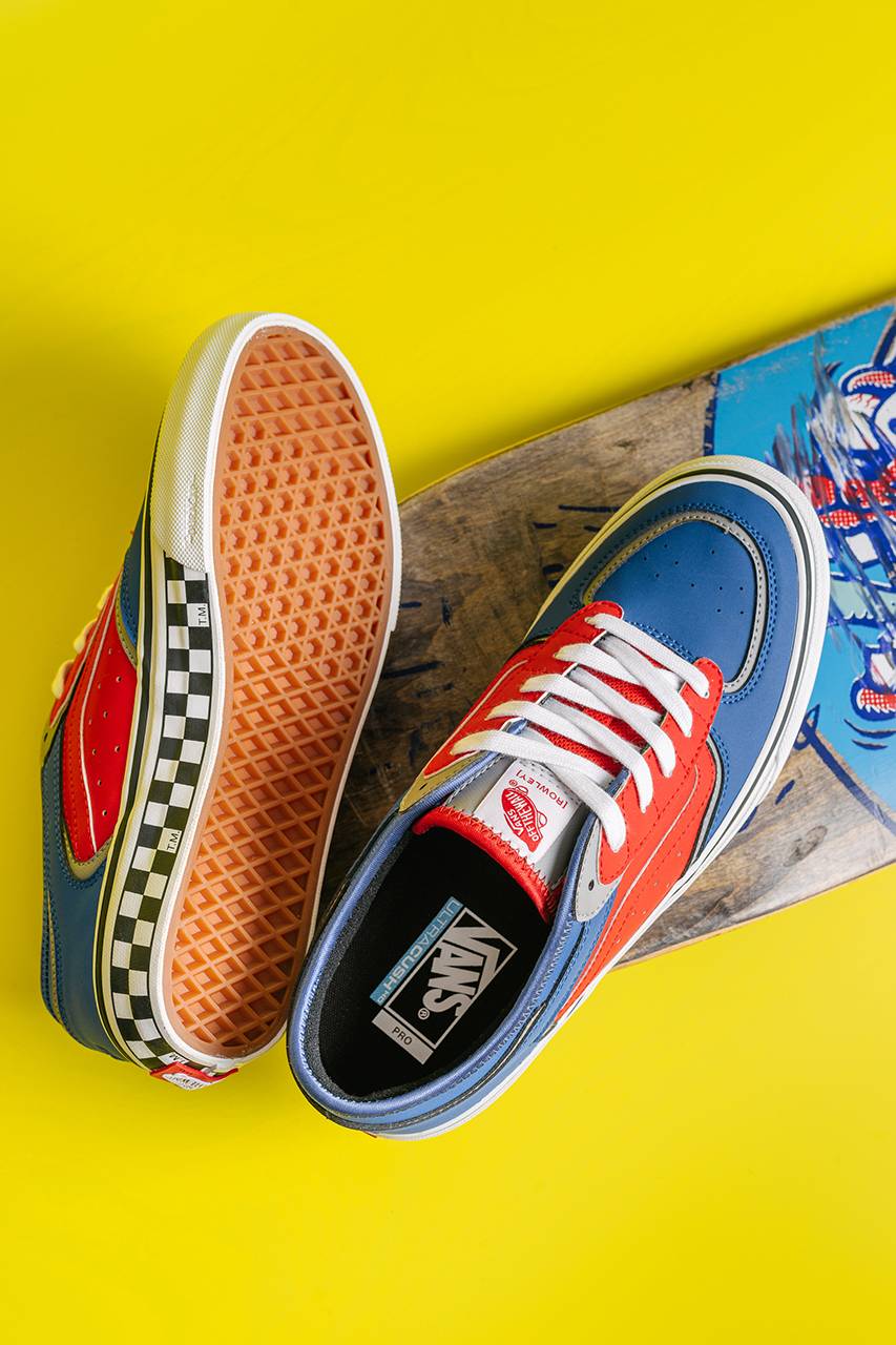 Thiết kế mới làm mới đôi giày 20 năm tuổi của Rowley Pro. PillowHeat tìm cảm hứng từ thiết kế tương phản hai tông màu của những năm 1970 và sử dụng hai hiệu ứng hình ảnh màu đỏ và màu xanh mạnh mẽ để phù hợp với thân giày. Là một đôi giày chuyên nghiệp, nó được trang bị hầu hết mọi công nghệ hiện đại nhất lúc bấy giờ với đế lót UltraCush HD và công nghệ gia cố chống mòn Duracap. Màu sắc ở lần hợp tác này mang đến một sắc thái vô cùng ngộ nghĩnh và vui vẻ, với tông màu chủ đạo mà xanh và đỏ, mọi họa tiết trên đôi giày được thiết kế vô cùng nổi bật. Điều đáng chú ý hơn cả khi Vans đưa vào sản phẩm này một màu sắc vô cùng riêng của mình khi thiết kế caro đen trắng checkerboard được trải dài ở đế giày - một chút tinh tế, một chút cá tính riêng.