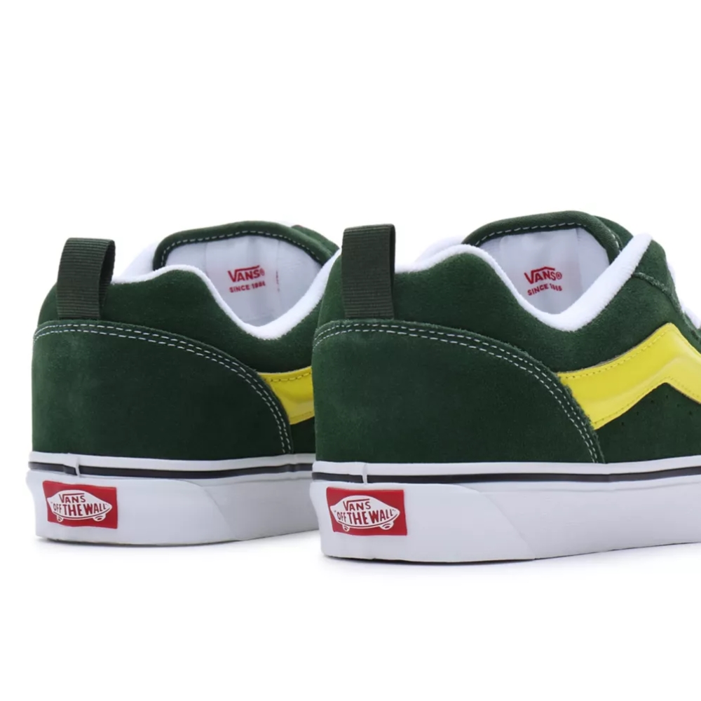 Điểm đặc trưng của Vans Knu Skool Green White là sự tôn vinh cho thập kỷ 90, một giai đoạn thời trang đặc trưng với vẻ đẹp riêng, ngoài ra đôi giày cũng là một cuộc phiêu lưu sáng tạo trong thế giới của giày thể thao đường phố. Lưỡi giày phồng lên và dải 3D-molded Sidestripe™ là điểm nhấn các yếu tố trong thiết kế cùng những câu chuyện về sự hồi sinh của một thời kỳ đầy kỷ niệm. Sự kết hợp này không chỉ đem lại vẻ ngoại hình nổi bật, mà còn là giao thoa giữa quá khứ và hiện đại, giữa di sản và sự đổi mới.
