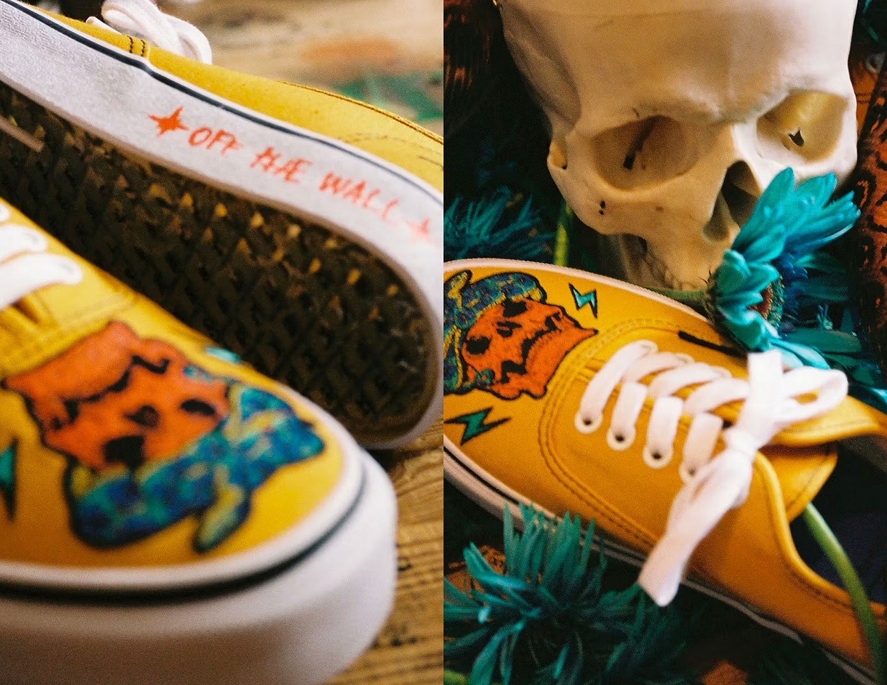 Sk8-Hi nổi bật với họa tiết bộ xương đang nhảy múa trên phần thân giày, phía sau chỉnh là đỉnh núi cao nhất Nhật Bản, Núi Phú Sĩ. Đối với Authentic, nó có thiết kế đầu lâu mang tính biểu tượng của HIROTTON với một con rắn cuộn tròn ngồi trên đầu – với màu chủ đạo vàng nổi bật, VANS AUTHENTIC trở nên đặc biệt hơn bao giờ hết, mang lại cảm giác hiện diện và sang trọng.Thiết kế hoa có thể nhìn thấy qua đế ngoài trong suốt cũng là một điểm nhấn.