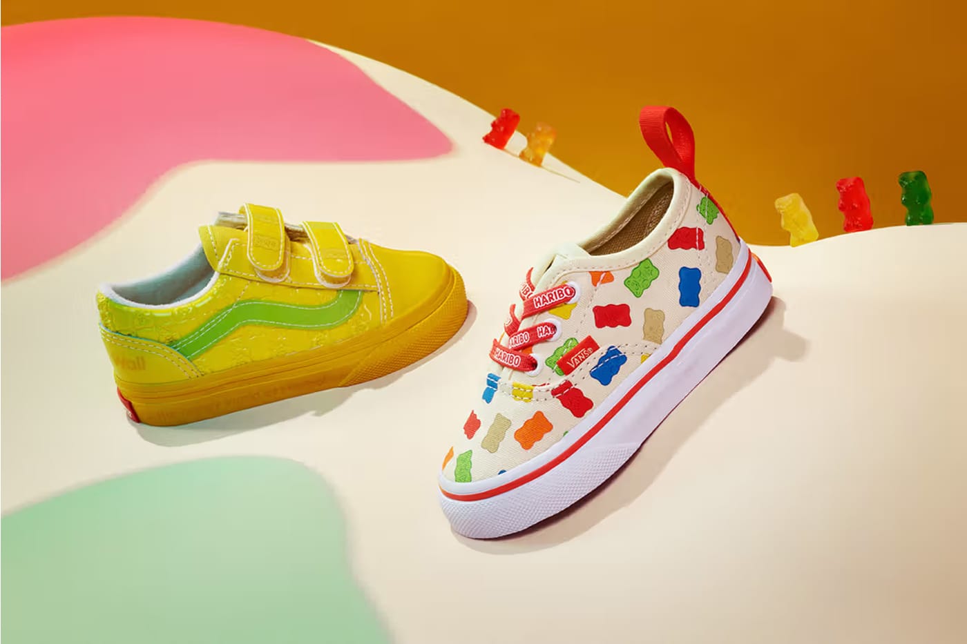 Thương hiệu kẹo dẻo Haribo được biết đến như thương hiệu kẹo dẻo nổi tiếng dành cho trẻ em. Các sản phẩm của Haribo đều dùng nước ép trái cây cô đặc, được lựa chọn từ những loại trái cây tươi, đạt chuẩn và không có những chất độc hại trong sản phẩm. Không dừng lại đó, Haribo luôn tiên phong trong việc tạo ra những hương vị kẹo dẻo mới lạ, độc đáo – là một phần tuổi thơ không thể thiếu với nhiều bạn nhỏ trên khắp thế giới. Nhân dịp kỷ niệm 100 năm thành lập Goldbears, VANS hợp tác với công ty kẹo lâu đời để tạo ra một bộ sưu tập mở rộng gồm giày dép và quần áo phiên bản đặc biệt, lấy cảm hứng từ sự ngọt ngào, dẻo dai, thơm ngon của những viên kẹo ngon lành.