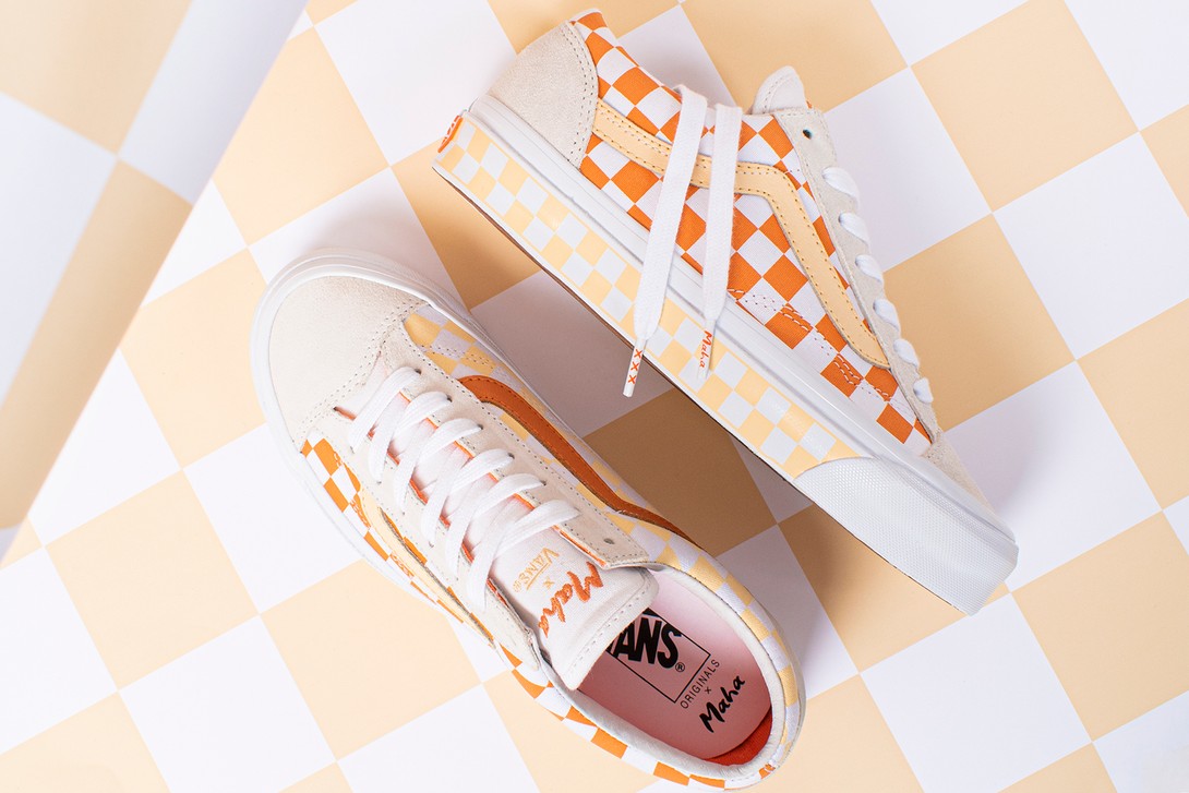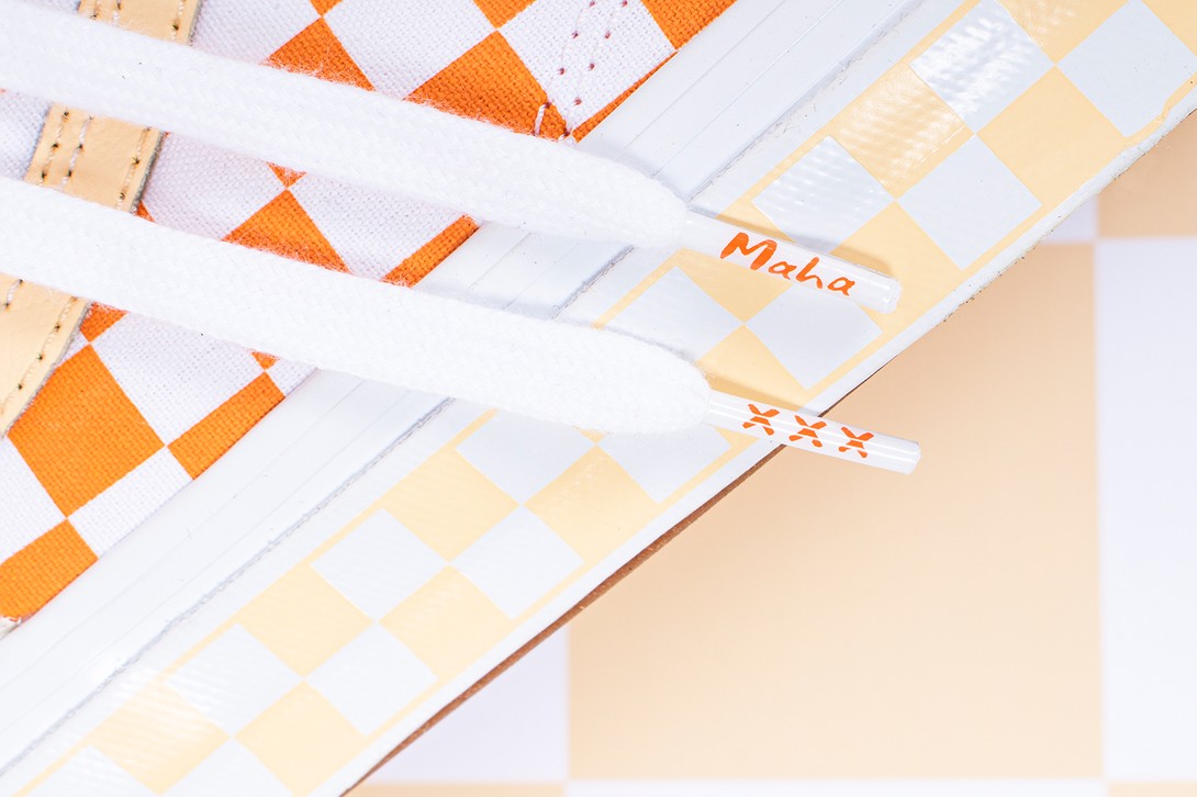 Đôi giày nổi bật bởi phối màu đặc biệt và khác lạ. Chi tiết bàn cờ nổi tiếng của Vans được ưu ái sử dụng một cách triệt để với màu sắc vàng cam sáng. Vải da lộn dẻo dai có thể thấy ở gót chân và xung quanh hệ thống viền. Dòng chữ Maha x Vans được nhấn mạnh ở lưỡi giày thể hiện rõ sự hơp tác cũng như sự đặc sắc bởi màu sắc và họa tiết từ cả hai. Hãy cùng xem các hình ảnh chiến dịch trong bộ sưu tập mới nhất cùng Vans nhé!