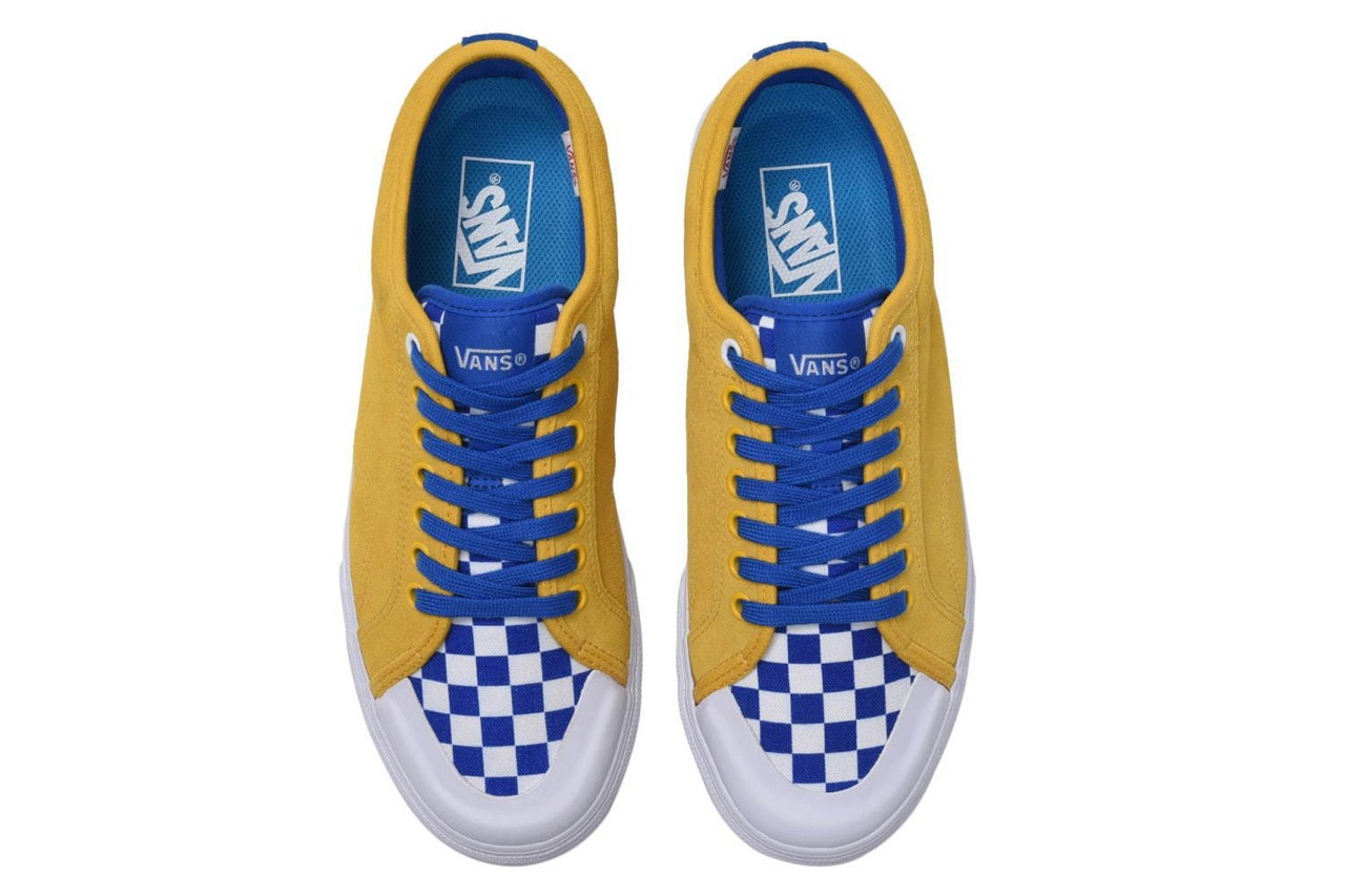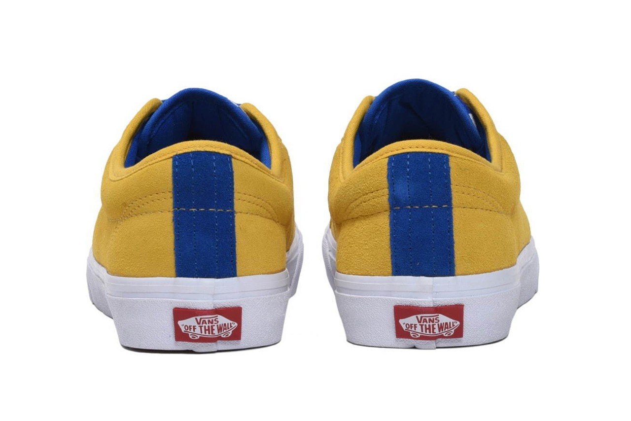 Có thể thấy rằng upper được xây dựng bằng vải bạt và kết hợp các tấm tứ quý màu vàng sáng với lưỡi và bàn cờ trắng và xanh. Một mũi chân lưu hóa được cung cấp thêm độ bền, và người đeo cũng có thể trao đổi giữa dây buộc màu vàng và màu xanh tùy thuộc vào độ tương phản ưa thích của họ. Bên trong, đương nhiên sản phẩm có bố trí vòng đệm đảm bảo sự thoải mái khi tham gia hoạt động thể thao hoặc đi dạo, trong khi đế giữa màu trắng trang bị huy hiệu cao su màu đỏ cổ điển ở gót chân và đế ngoài bằng đế cao su để hoàn thiện vẻ ngoài một cách hoàn hảo nhất.