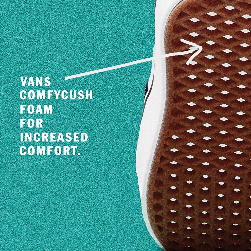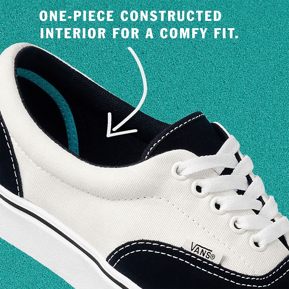 Kỷ nguyên ComfyCush minh họa cách Vans thích nghi với nhu cầu phát triển của người tiêu dùng. Ông Nathanial Iott, giám đốc thiết kế giày dép tại Vans cho biết:” Với sự thoải mái là mục tiêu, ComfyCush Era sử dụng vật liệu được chế tạo một mảnh bao gồm các dây buộc lưỡi để cải thiện sự phù hợp và cảm giác, thêm hỗ trợ vòm và cấu trúc xốp và cao su đúc để tạo ra sự kết hợp hoàn hảo giữa đệm và kẹp cho sự thoải mái lâu dài.