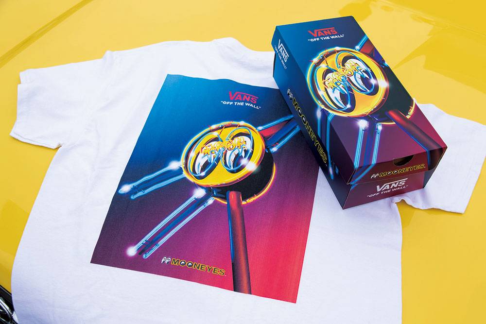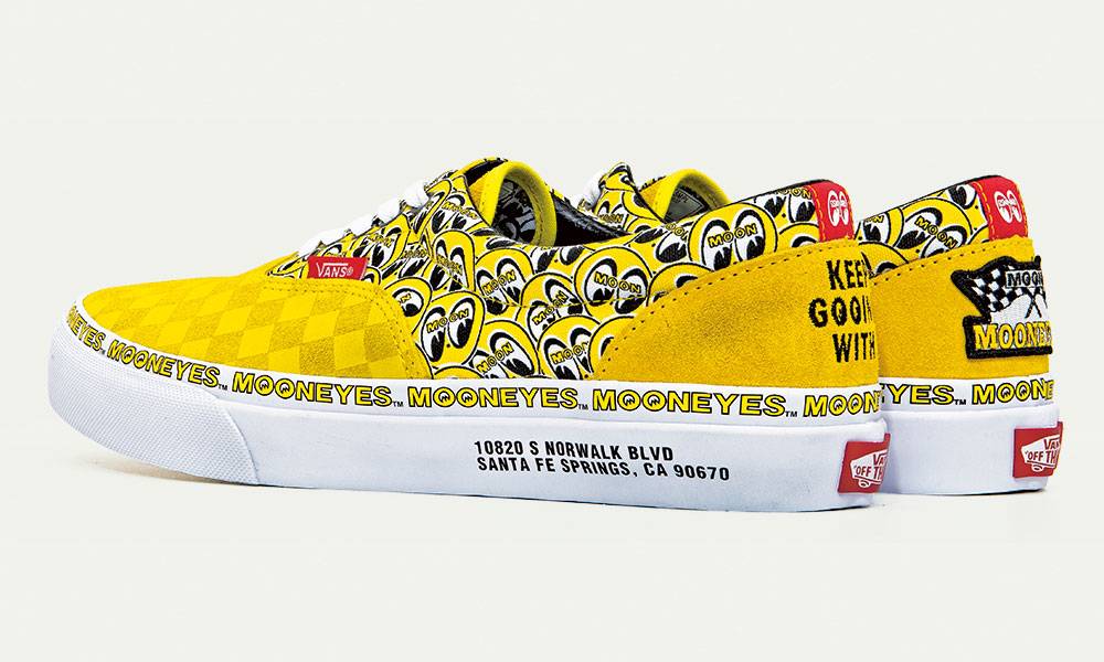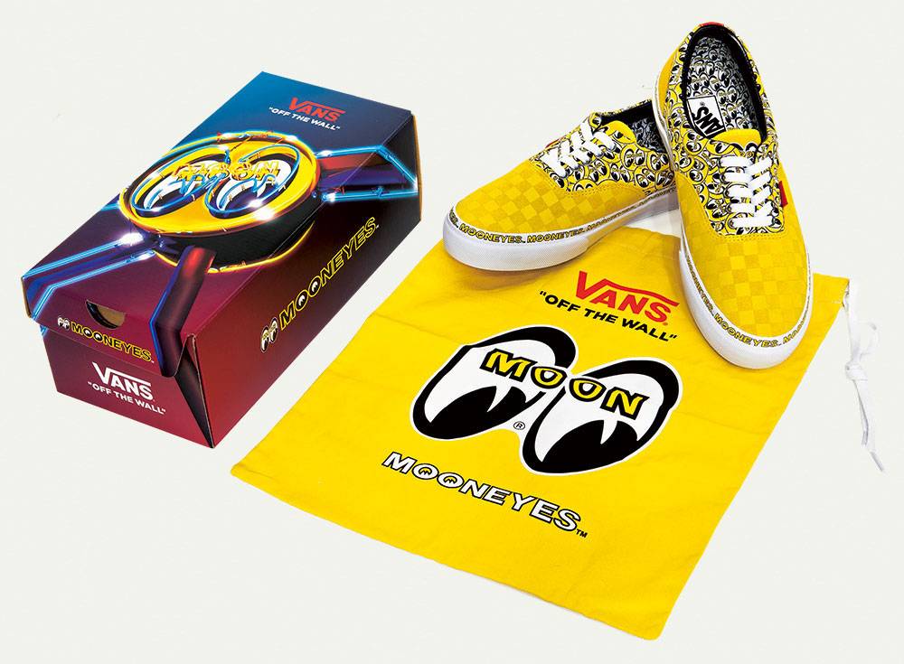 Sản phẩm được nhắc đến ở lần hợp tác này vẫn quen thuộc với hai đôi giày Era và Sk8-Hi và logo "mắt to" Mooneyes- chúng được thể hiện bằng màu đại diện vàng và đen .Mũi giày được làm bằng da lộn mịn và thô để tạo thành một bàn cờ. Logo "big eyes" trên khung vẽ trung tâm được xếp ngẫu nhiên thành một mẫu mới. Gót chân trái được thêu chữ và bàn chân phải được đánh dấu bằng "miếng vá". Cách trình bày. Mooneyes đã cẩn thận hoàn thành mọi chi tiết: có "big eyes" trên lưỡi, gót chân và bên trong. Đế ngoài được phủ địa chỉ của Mooneyes tại Hoa Kỳ và thậm chí dòng nước được in với Logo Mooneyes.