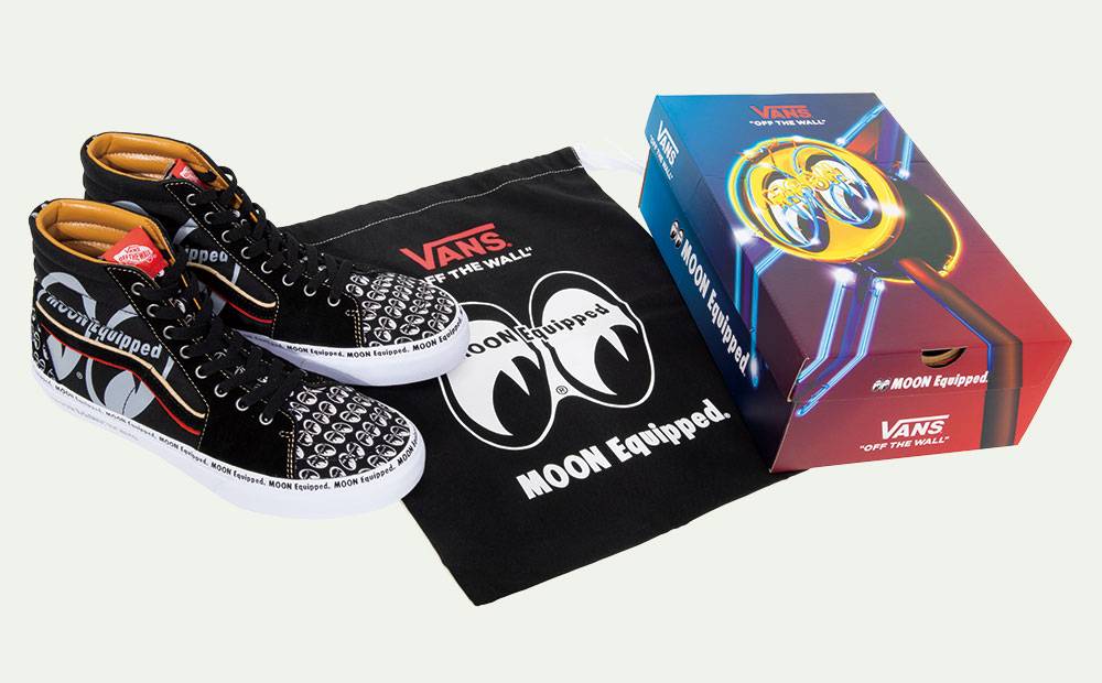 Mooneyes cũng sẽ ra mắt một đôi Sk8-Hi trong năm nay, đây là lần thứ hai sử dụng loại giày này sau đôi giày đồng thương hiệu màu vàng năm 2016. Nó được thiết kế bởi thương hiệu "MQQN Equipped" của Mooneyes, do đó, màu sắc phù hợp đã trở nên tốt hơn cho Kết hợp đen trắng.