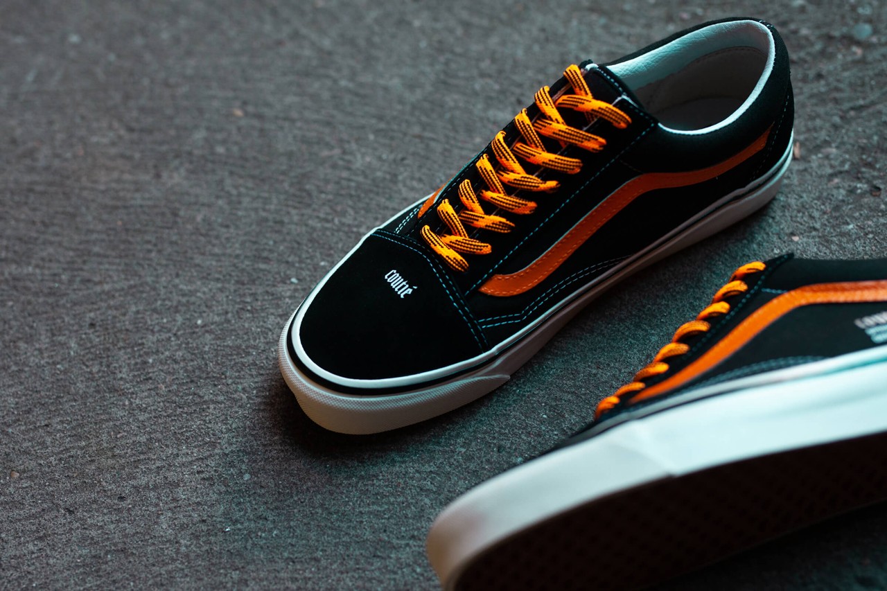Mỗi tùy chỉnh thủ công trên sản phẩm sử dụng vải bạt đen / trắng cổ điển Old Skool hoặc Sk8-Hi cho đế của nó, sau đó thêm các dải Jazz màu cam sáng và dây buộc màu cam / đen có thể quấn quanh cổ giày của Sk8-Hi. Các chi tiết trang trí thương hiệu đặc biệt hơn khi xuất hiện ở bên phải, trong đó logo Olde English Coutié màu bạc nằm trên văn bản màu trắng có hình chữ nhật - bên cạnh đó là dòng chữ “Spring/Summer 2020, Germany.” . Trên nền của Vans Old Skool cùng SK8-Hi cổ điển là nổi bật sắc cam của dây giày mang thương hiệu của Coutié. Màu sắc được tuyển lựa kĩ càng để sản phẩm được tung ra thị trường đều nổi bật được cả hai doanh nghiệp đã hợp tác cùng nhau.