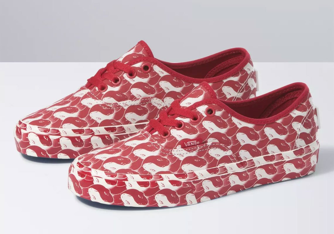 PATTERN COLORWAY được thiết kế nền theo phong cách “hút khách” nhất nhà VANS - hoạ tiết Checkerboard. PATTERN COLORWAY chia thành hai phiên bản nhỏ. Với hai sản phẩm này được VANS lựa chọn tone đen - đỏ chủ đạo được nhấn nhá, cách điệu bằng hình ảnh “hai linh vật” biểu trưng cho sự hoang dã báo và rắn. Vẫn với sự tinh tế và tâm huyết vốn có, VANS đã linh hoạt lồng ghép hình ảnh “các linh vật” và hoạ tiết đặc trưng Checkerboard của mình lại cùng nhau.