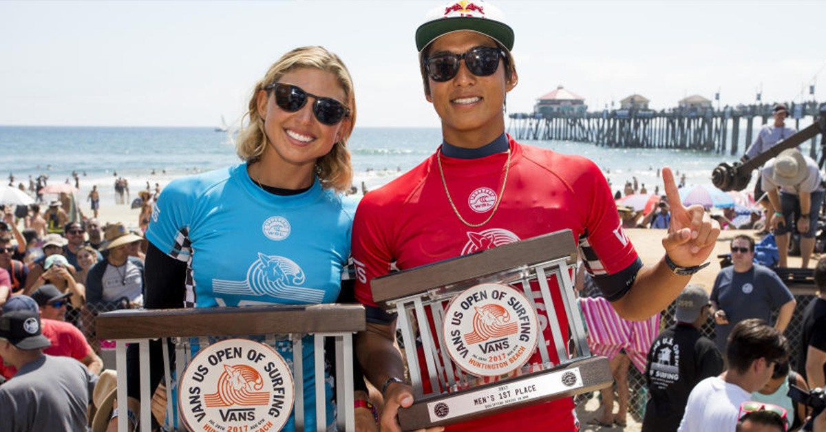 Sage Erickson (Mỹ) và Kanoa Igarashi (Hoa Kỳ) tuyên bố chiến thắng tại Vans US Open of Surfing trong thể thức sóng hai đến bốn feet (0.5 - 1 mét) ở phía nam của Huntington Beach Pier. Phần đông khán giả trên đài đã được chứng kiến Erickson giành được chiến thắng tại Stop No. 6 trên 10 ở World Surf League (WSL) Championship Tour (CT) còn Igarashi thì giành giải nhất giải đấu Men’s Qualifying Series (QS) 10,000.