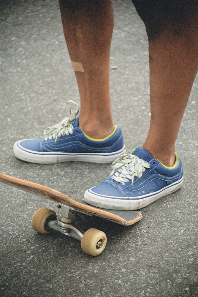 Vans x Quartersnacks sử dụng hình ảnh Vans Old Skool bất hữu với tông xanh lam và tông trắng Lampin ít được nhiều người biết đến, thế nhưng đây lại là những màu sắc kinh điển của giày trượt băng giữa những năm 90 (được lấy từ kho lưu trữ của nhà Vans).