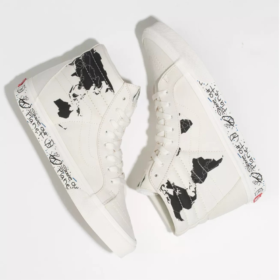 Đặc biệt, ở SAVE OUR PLANET X VANS SK8-HI REISSUE BLACK trên tông màu trắng là hình ảnh của bản đồ thế giới màu đen chi tiết từ đường ranh giới giữa các quốc gia, đầy sáng tạo chưa từng có trong các sản phẩm trước đây và còn dòng chữ biểu tượng SAVE OUR PLANET ở phần hai bên đế cùng nhiều họa tiết khác chắc chắn sẽ là một item phối đồ mới lạ, bắt mắt cho các tín đồ yêu thời trang nói chung và yêu sneaker nói riêng. Hãy sở hữu lấy cho mình siêu phẩm hot này các bạn nhé!