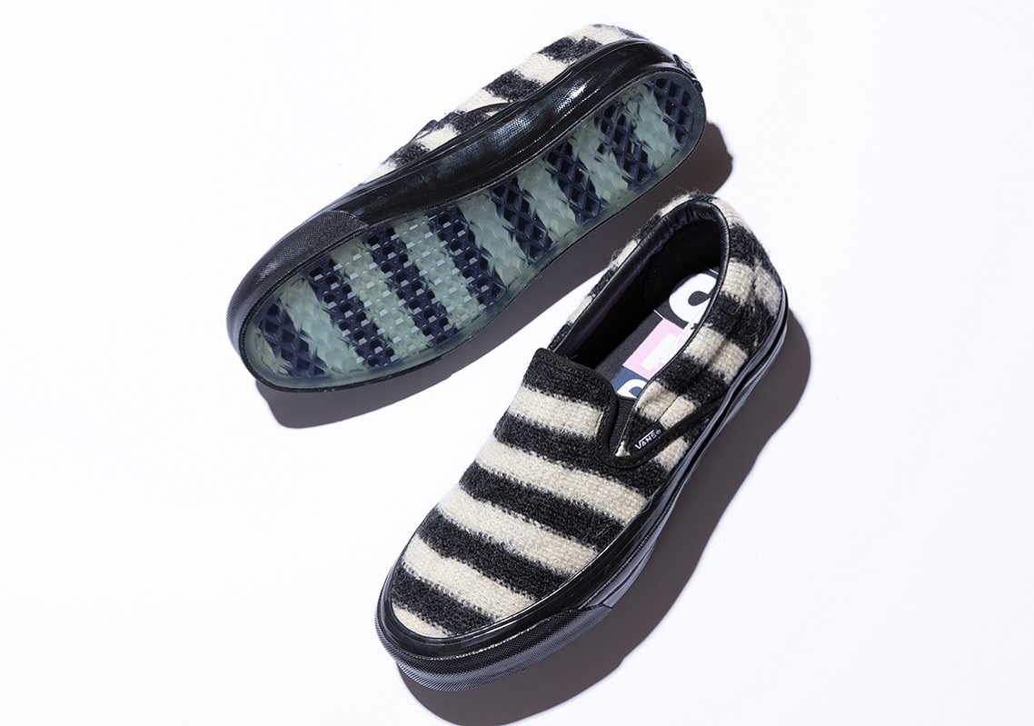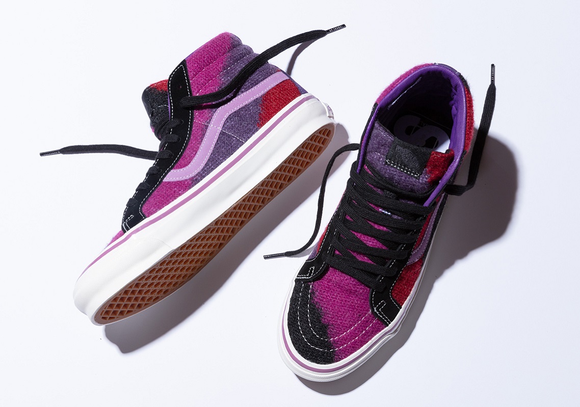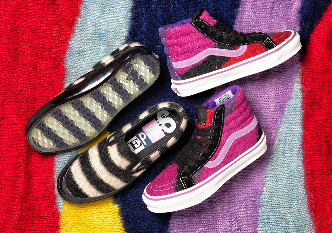 Bắt đầu bộ sưu tập THE CON CONCEPT x VAULT BY VANS “KING’s ROAD” PACK bằng phiên bản VANS SLIP-ON, được thiết kế đẹp mắt với tone màu đen và Marshmallow cách điệu đan xen theo sọc ngang. VANS SLIP-ON càng mang lại cảm giác cao cấp hơn khi được VANS tinh tế và sáng tạo dùng chất liệu chọn lọc mohair - một loại vải sợi được dệt từ lông của dê Angora. Tiếp tục bộ sưu tập THE CON CONCEPT x VAULT BY VANS “KING’s ROAD” PACK bằng siêu phẩm SK8-HI được thiết kế bắt mắt với tone Purple Plumeria cách điệu đan xen ngẫu nhiên cùng sắc đỏ và đen.