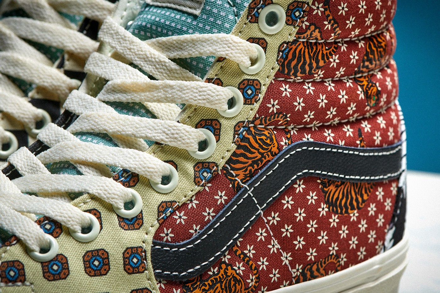 Tiếp tục giới thiệu lại phong cách cổ điển của chính mình, sau một khoảng thời gian hợp tác cho những sản phẩm vô cùng thịnh hành, hiện tại Vans chính thức lên tiếng cho những sản phẩm của riêng mình: Tiger Patchwork. Có thể thấy rằng đây là sản phẩm ra đời bởi ý tưởng hợp tác, ý tưởng chắp vá những vật liệu được lựa chọn kỹ càng nhất kết hợp hài hòa cho một sản phẩm vô cùng mới lạ và đẹp mắt. Tất nhiên với một ý tưởng hiện đại này, Vans vẫn tiếp tục phổ biến trên các kiểu dáng cổ điển của chính mình bao gồm: Sk8-Hi, Era và Classic Slip-On, gói sử dụng nhiều màu sắc, hoa văn và chất liệu hỗn hợp sáng tạo.