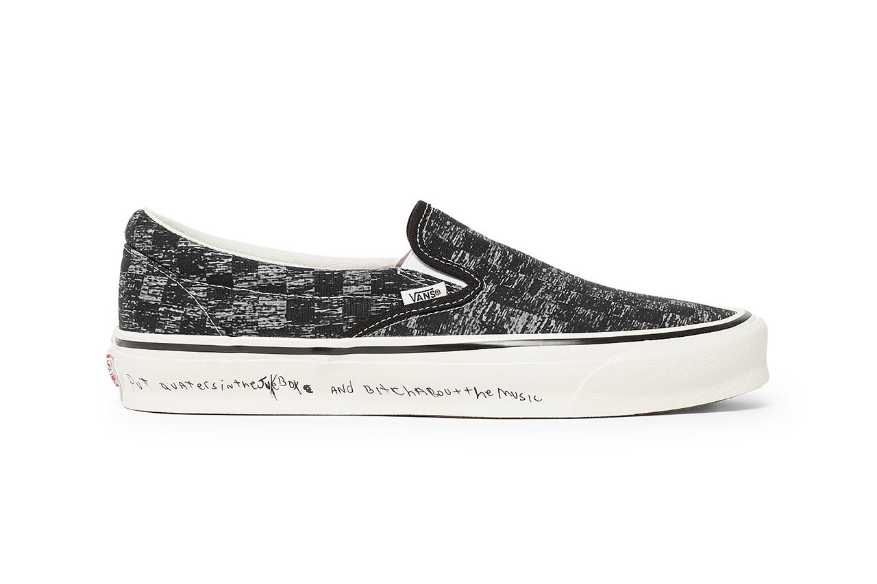 Mỗi kiểu dáng lần nay phản ánh chân thực nhất sự tích cực chuyển mình từ phía VANS nói chung và trong phong cách của nhà nhiếp ảnh gia nổi tiếng nói riêng. Sắc màu chủ đạo là đen nhưng vẫn nổi bật với đế lót đỏ. Hai màu sắc gần như tương phản phần nào đẩy mạnh giá trị của nhau lên cao nhất. Nổi bật nhất có thể kể đến Slip-On OG LX. Chủ động trong phong cách sáng tạo, họa tiết checkerboard được làm mờ thành xám đen trên phần upper của sản phẩm, và với một cách nhìn nào đó, bạn có thể thấy rằng, họa tiết trên đôi giày này làm chúng ta liên tưởng đặc biệt đến hình ảnh nhiễu sóng từ tivi, một sự nhiễu sóng đầy tính nghệ thuật. Sk8-Hi LX đặc biệt với dòng chữ viết tay được làm chìm trên hầu hết đôi giày. Old Skool LX nhẹ nhàng thanh lịch với màu xám đen nho nhã tinh tế.
