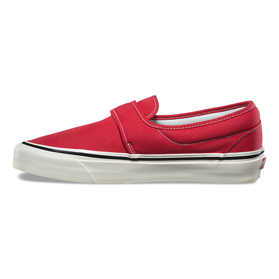 VANS ANAHEIM FACTORY SLIP-ON 47 V DX ra đời theo một bộ ba với ba màu dễ phối là đỏ (red), trắng (white) và đen (black). Một kiểu dáng không cũ theo phiên bản Slip-on ra đời từ những năm 1978, không lỗi mốt theo thời gian, nhưng ngày càng cải tiến và hiện đại hơn đến từ thiết kế và chính chất liệu đã giúp xây dựng nên đôi VANS ANAHEIM FACTORY SLIP-ON 47 V DX. Vẫn giữ những nguyên lý cơ bản trong thiết kế của giày VANS, VANS Slip-on có lớp đệm mút cổ chân êm ái, khóa Strap linh hoạt cho đôi Slip-on thêm chắc chắn, logo cờ hiệu nền đỏ và đế tổ ong êm ái truyền thống, những đường chỉ may đôi tỉ mỉ kĩ càng đều được làm bằng tay bởi các công nhân đến từ VANS, đặc biệt hơn cả là đế Ultracush cho độ êm ái được nâng cao, chất lượng hoàn hảo. Đôi giày vẫn mang tính biểu tượng đến từ VANS-OF THE WALL, nhưng sắc đỏ nổi bật chắc chắn sẽ khiến cho VANS ANAHEIM FACTORY SLIP-ON 47 V DX RED nhận được nhiều sự quan tâm của hầu hết mọi đối tượng trong thị trường Sneakers.