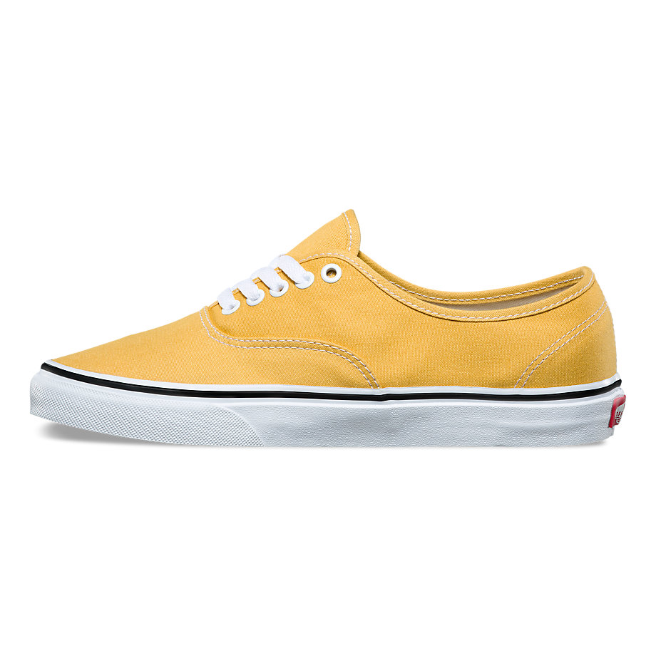 VANS AUTHENTIC là mẫu giầy ra đời sớm nhất của hãng giày thể thao VANS. VANS AUTHENTIC CLASSIC luôn vinh hạnh nằm trong hạng mục BEST SELLER của hãng cùng với những sản phẩm khác như VANS SK8, VANS OLD SKOOL...Mẫu giày AUTHENTIC bán chạy nhất hiện nay là đôi VANS AUTHENTIC nguyên bản có đến 19 lựa chọn màu sắc, với cờ hiệu VANS nền đỏ chữ trắng, đế tổ ong và vải trơn màu không họa tiết. VANS AUTHENTIC OCHRE/TRUE WHITE là một trong 19 màu sắc được nhà sản xuất lần lượt phối cho sản phẩm của mình. VANS AUTHENTIC OCHRE/TRUE WHITE mang màu vàng của sự rạo rực, nóng bỏng, tuy không phải là một màu sắc cổ điển nhưng màu vàng đến từ VANS AUTHENTIC OCHRE/TRUE WHITE luôn sẵn sàng cùng mọi phong cách và hứa hẹn mang lại một cái tôi cá nhân thật sự đặc biệt cho người mang nó