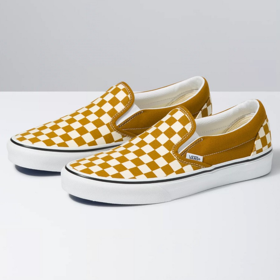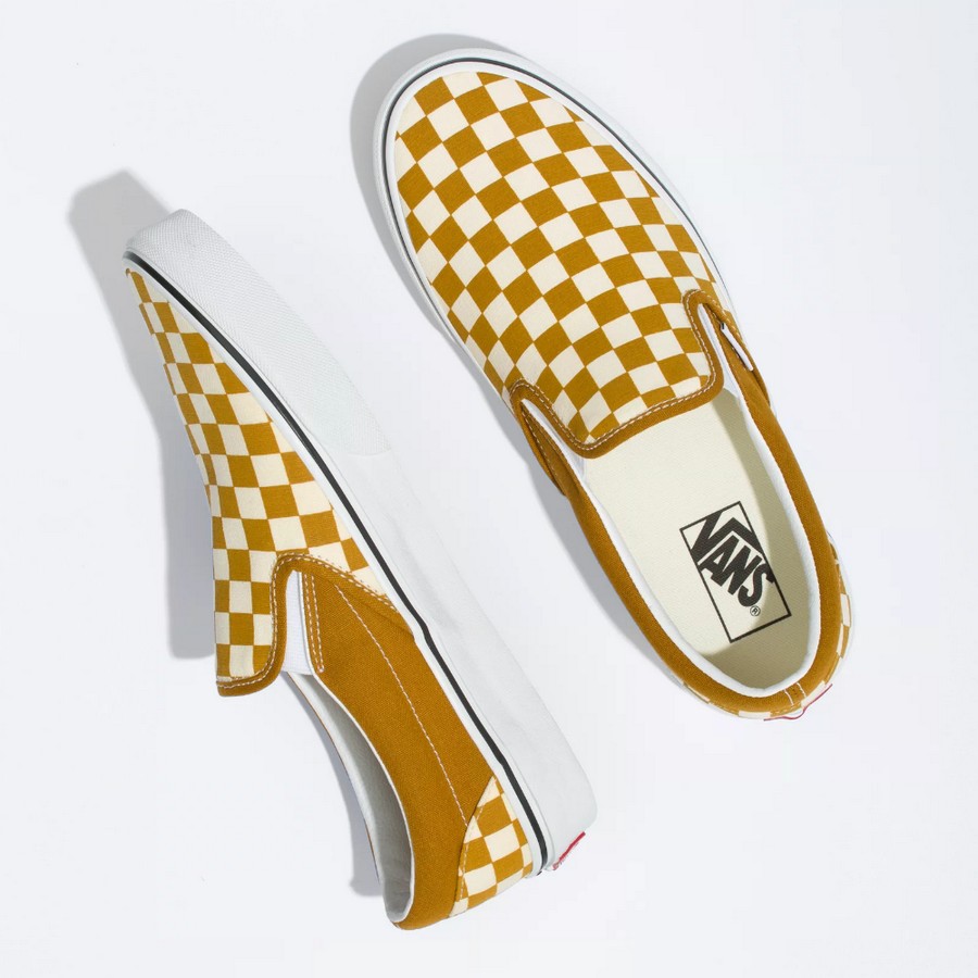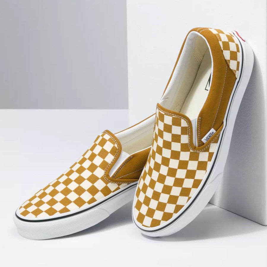 VANS CHECKERBOARD CLASSIC SLIP-ON sở hữu phối màu được kết hợp từ bộ đôi nâu vàng và trắng. Màu trắng chủ đạo thường thấy trên đôi VANS được lồng ghép khéo léo với tone nâu trung tính tạo nên vẻ ngoài basic mà ấn tượng cho họa tiết bàn cờ.