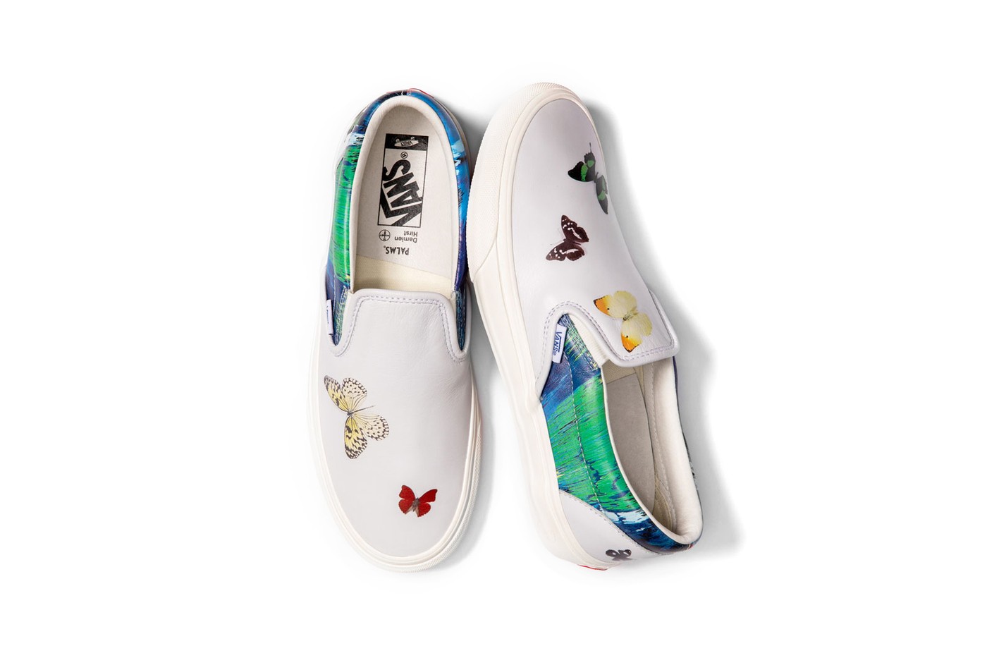 Ở Vans Classic SlipOn, Vans Damien Hirst đã trình bày cả 3 mẫu họa tiết trên. Đầu tiên là mẫu Vans Classic SlipOn VLT LX với phần mũi giày có sắc xám nhạt với những chú bướm tinh tế mang tính biểu tượng của Hirst.