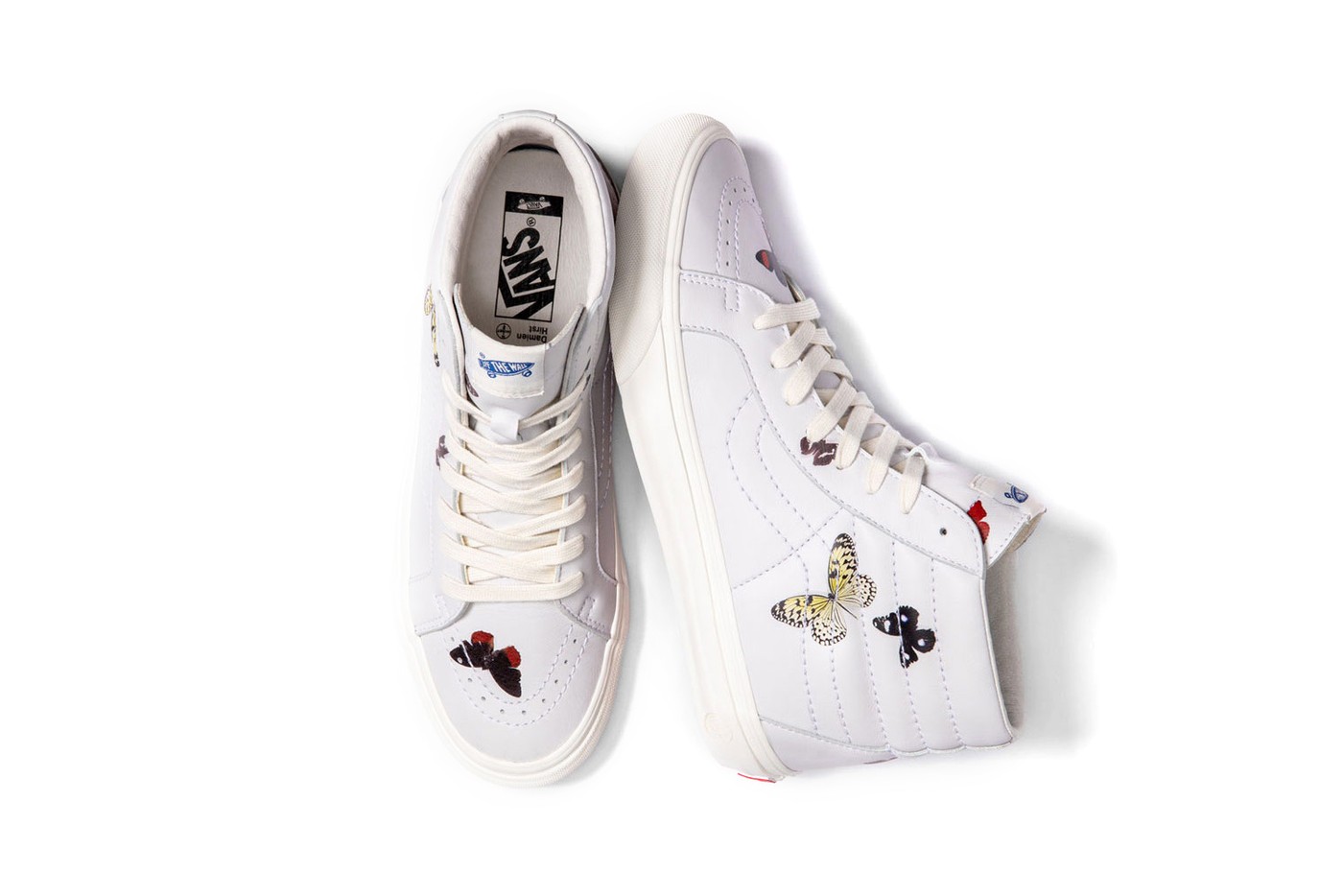 Bộ sưu tập Vans Damien Hirst bao gồm 6 mảnh ghép với các họa tiết cực kì dễ nhận biết từ Hirst: các đốm, bươm bướm, trnh xoay và đầu lâu trên 2 phiên bản cổ điển nổi tiếng của nhà Vansg Vans Sk8-Hi và Vans Classic Slip-On.