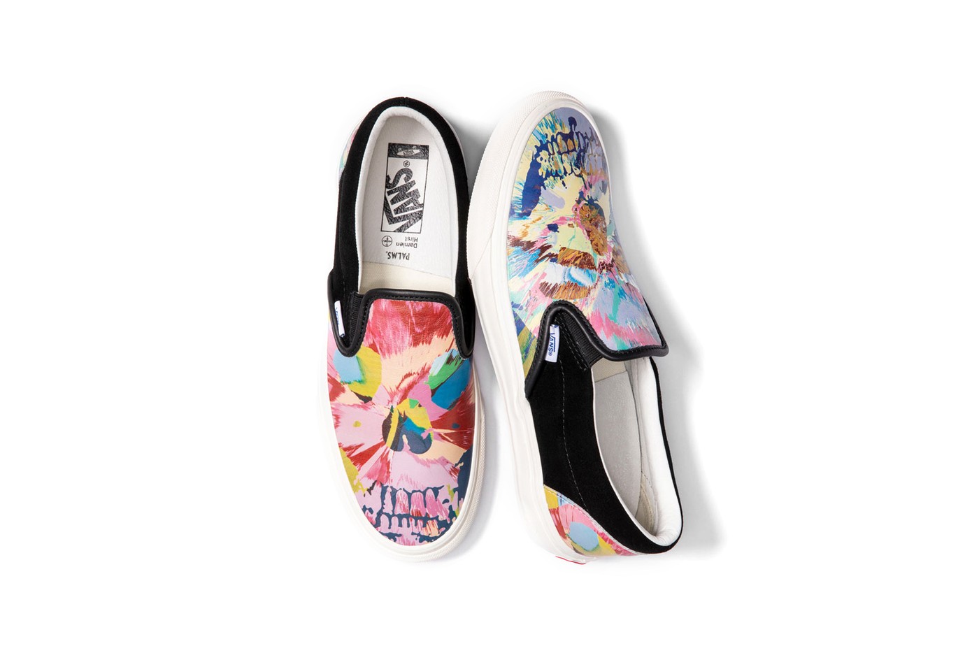 Phiên bản Vans Damien Hirst SlipOn cuối cùng có thiết kế hộp sọ xoay Hirst bao phủ khắp phần mũi giày kết hợp với 2 phía bên của giày màu đen.