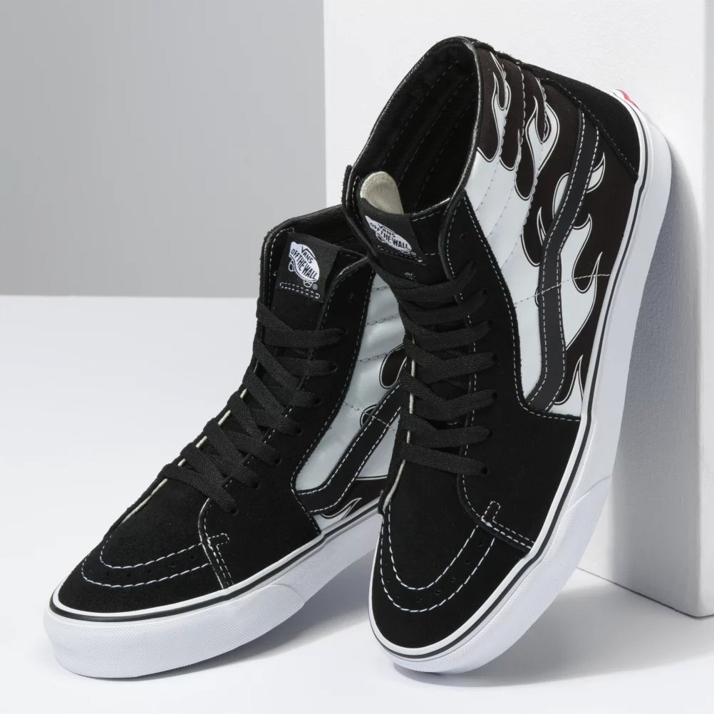 Mùa này, nhà VANS đã thỏa lòng các VANSlover bằng cách cho ra đời BST FLAME với họa tiết ngọn lửa rực cháy. Ngọn lửa trắng chạy xuyên suốt tạo điểm nhấn trên nền giày đen basic nhất, gợi lên một hình ảnh sống động, lung linh đầy cảm hứng và đam mê.