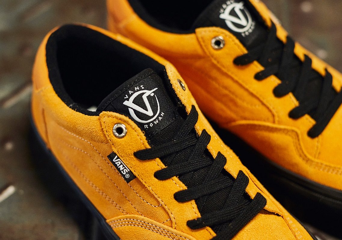 Thành viên tiếp theo của BST Vans Japan Whirlpool là Vans Rowan Pro. Màu sắc chính của mẫu thiết kế này là sắc vàng đậm kết hợp một số màu trung tính. Đặc biệt, phần chi tiết ở lớp da được sắp xếp lộn xộn cùng phù hiệu Circle V chạm khắc phía gót giày. Đây cũng là mẫu duy nhất có thiết kế thêm phù hiệu này phía sau giày.