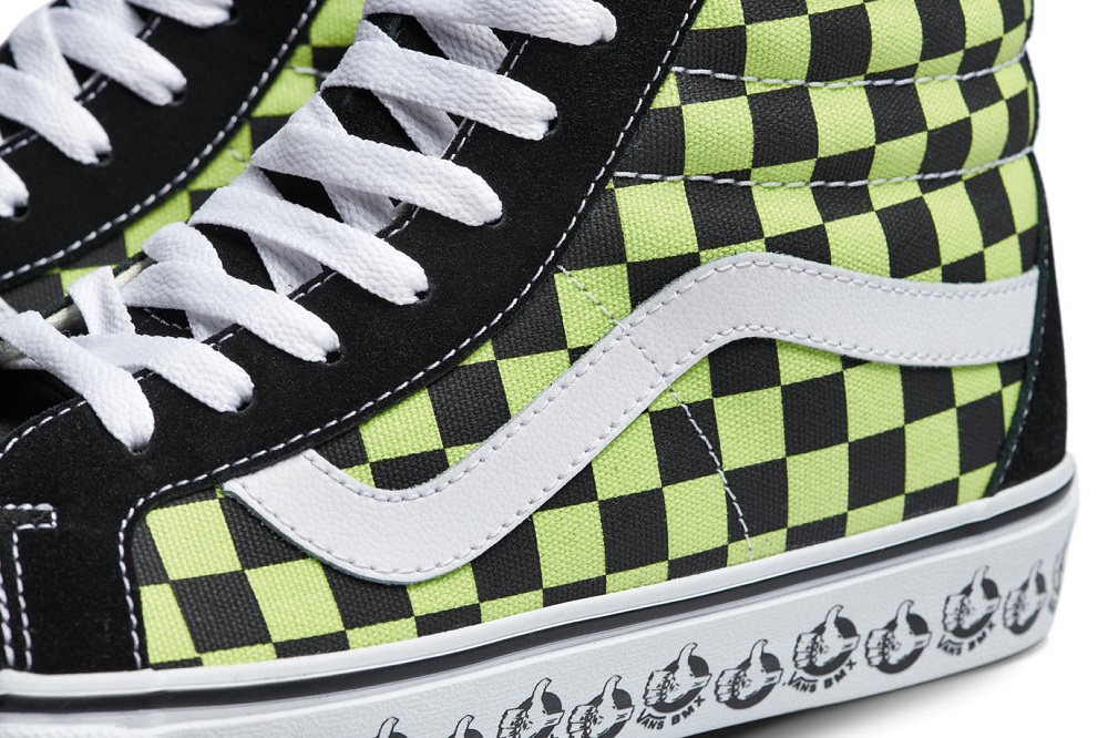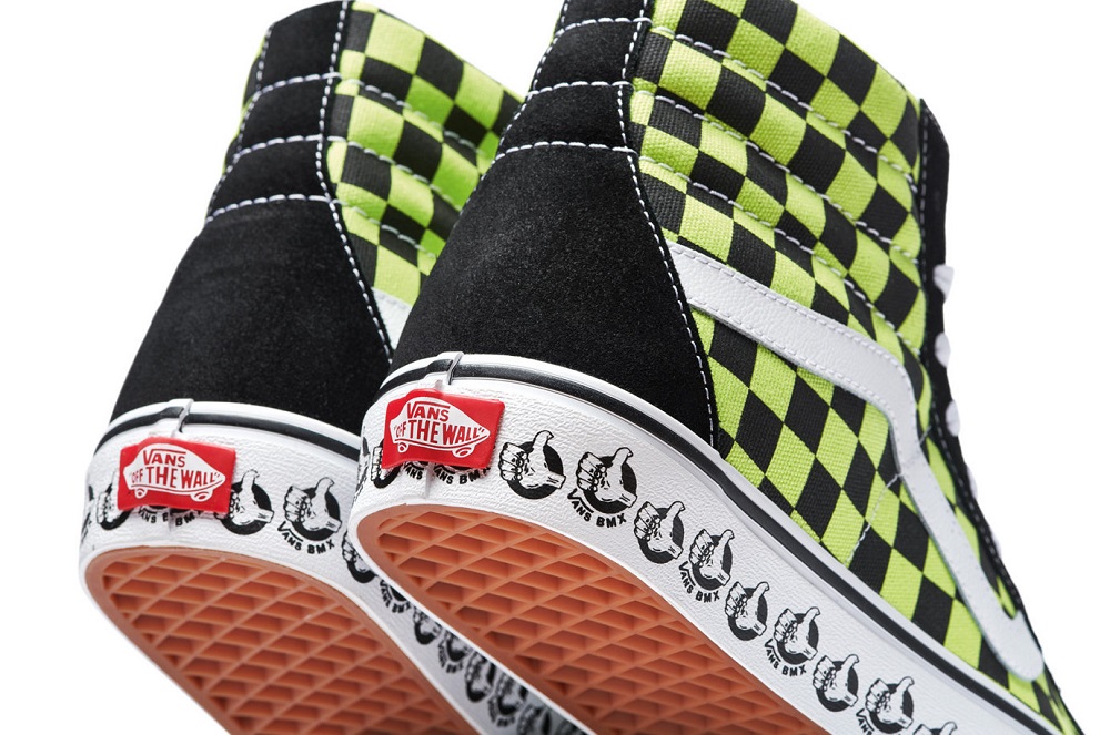 Lấy cảm hứng từ lối sống BMX ở những năm cuối thập niên 70 và kết hợp với kiểu đồ họa cổ điển đậm chất Vans, các mẫu giày được thiết kế dạng tùy chọn unisex cùng 3 cách phối màu checkerboard: màu xanh lá cây, màu trắng và màu xanh navy. Tất cả chúng đều được các nhà thiết kế tập trung kết hợp giữa vải và da lộn theo chất cổ điển Vans, dọc phần đế giày được in những ngón tay cái cực kỳ vui mắt.