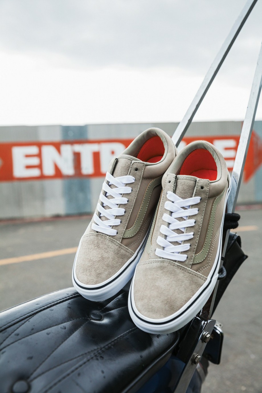 Bộ sưu tập Women’s Classic footwear này bao gồm ba kiểu Sk8 Hi Slim và hai chiếc Old Skools với vật liệu bomber nylon dọc upper và một tấm lót marigold cho phần nội thất, trong đó Style 23 V với cái nhìn hoàn hảo của tấm nylon và phần da lộn ở mũi giày nhờ vào các nút đóng bằng Velcro.