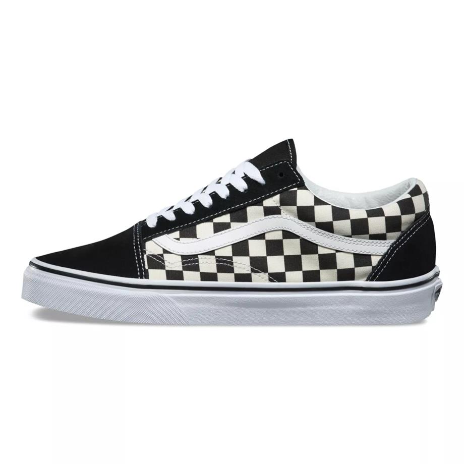 Ở Vans Old Skool Checkerboard Black / White, kiểu dáng Old Skool cổ điển đã khoác lên mình từng đường kẻ caro đen trắng. Nổi bật nhất là phần Upper của giày với da lộn và vải bố kết hợp tạo thành biểu tượng Vans ở hai bên. Đây chắc chắn là một đôi giày thể thao có sự kết hợp hoàn thiện giữa phong cách đơn giản – thời thượng và đi kèm với chất lượng – êm ái.