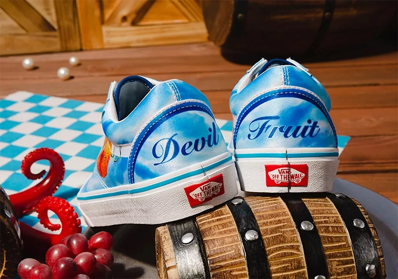 Kiểu dáng thứ hai VANS Old Skools tập trung phát triển Devil Fruit - những loại trái cây bí ẩn, đặc biệt, được biết đến với khả năng vĩnh viễn ban cho những người ăn chúng sức mạnh siêu phàm. Họa tiết Devil Fruit nằm trên phông nền lấy cảm hứng từ bầu trời mang lại cảm giác tươi mới đặc biệt. Trong khi đó, VANS Authentics – kiểu dáng cuối cùng của bộ sưu tập được hoàn thiện với nửa trên giống như chiếc mũ rơm của nhân vật biểu tượng Luffy được tô điểm bằng các biểu tượng cá nhân liên quan đến đồng đội cốt lõi bao gồm Zoro, Franky và MC. Bên cạnh những đôi giày biểu tượng nhà VANS là các mặt hàng quần áo bao gồm áo khoác và áo phông được xử lý đồ họa chủ đề liên quan.