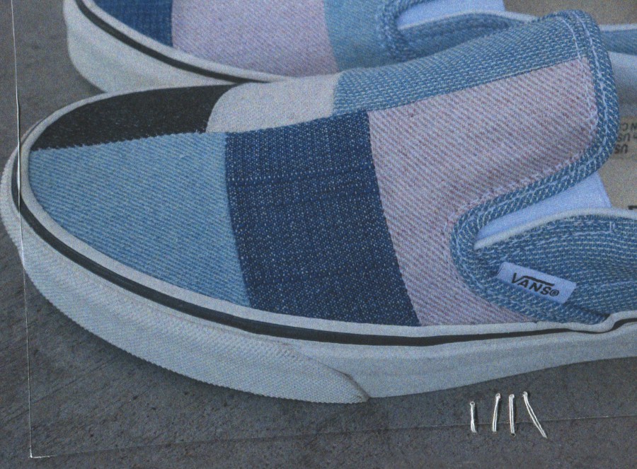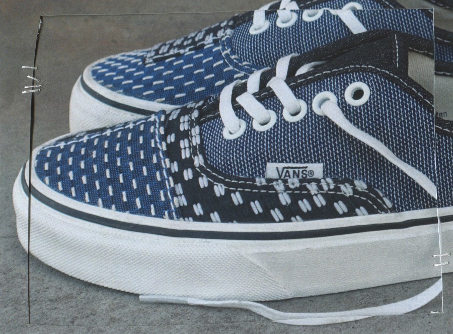 Phiên bản Authentic đã được tái thiết kế hình ảnh với cách sử dụng vải denim bọc toàn bộ bên ngoài phần vải truyền thống và được hoàn thiện với họa tiết hậu chỉnh sửa Sashiko cho phần da lộn bọc dưới gót và trên mũi giày. Sk8-Hi sử dụng vật liệu da lộn màu Navy nhằm tăng độ bền cùng khả năng bắt sáng trên tông màu khi vải denim và họa tiết boro chiếm hữu hầu hết các bộ phận bắt mắt. Còn Classic Slip-On thì đơn giản hơn với đúng cái tên của nó, từ họa tiết chia màu phân khối tới kiểu dáng cổ thấp, ta thấy phần Vans ở cặp đôi này nhiều hơn khi so sánh với các người anh em cùng bộ.