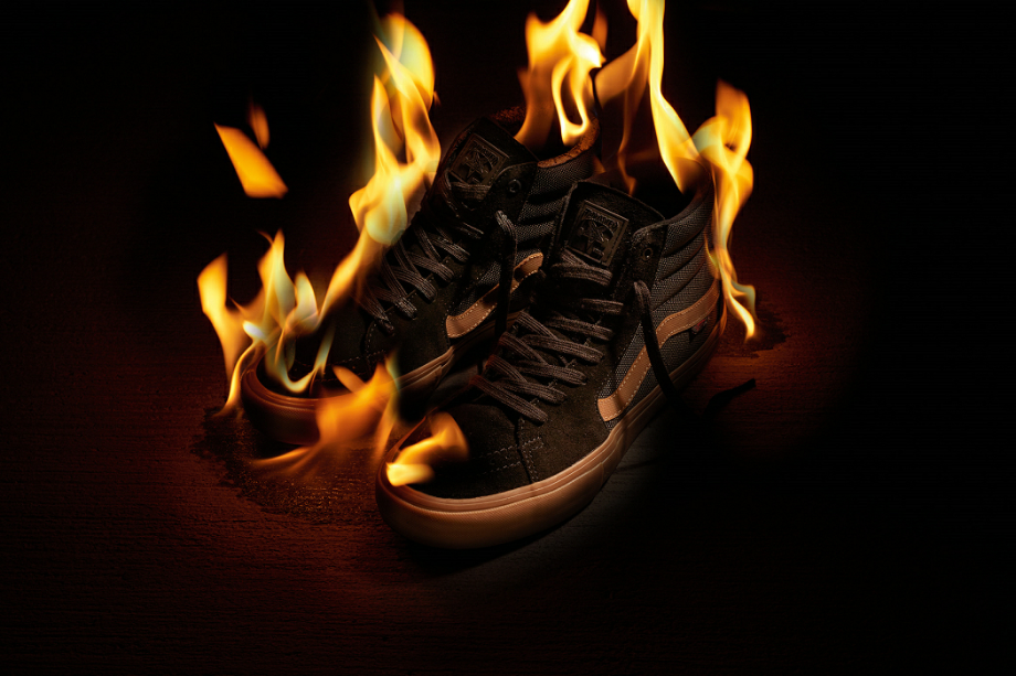 Nhằm quảng bá cho di sản không thể tranh cãi của Thrasher Magazine danh tiếng của bản thân họ trong ngành công nghiệp ván trượt, Vans đã kỉ niệm logo biểu tượng ngọn lửa của Thrasher (ra đời lần đầu vào năm 1981) để nhân dịp ấy giới thiệu một dòng sản phẩm may mặc, phụ kiện và giày dép mới vào mùa thu này. Là biểu tượng thống nhất trong thiết kế xuyên suốt bộ sưu tập, những ngọn lửa màu cam của Thrasher được làm tô điểm để làm họa tiết trải dài phần upper của giày và để làm điểm nhấn màu sắc cho toàn bộ tông nền giày, qua đó tái hiện hình ảnh trang phục phổ biến của Thrasher như áo choàng, áo thun, áo choàng dài, áo jacket và giày dép.