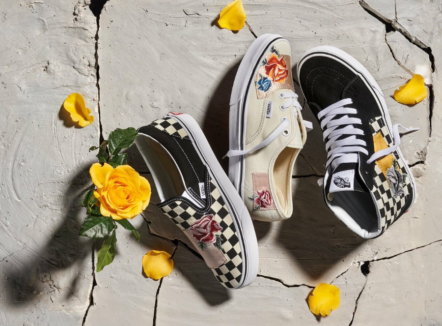 Là một biểu tượng của Vans từ năm 1966, Authentic được cung cấp bản vá màu hồng satin trên vamp và gót chân với thiết kế hoa hồng thêu. Classic Slip-On thì được trang trí bằng sự kết hợp giữa họa tiết hình ảnh checkerboard cùng các miếng vải vá thêu hoa trên vamp. Tương tự với Sk8-Hi nhưng trên mẫu hình này họa tiết hoa có màu xám vắt ngang trên mảng checkerboard. Và tất cả sự hiện diện này sẽ có mặt tại hệ thống cửa hàng bán lẻ của Vans và trực tuyến tại Vans.com/Classics bắt đầu từ tháng 6 này.