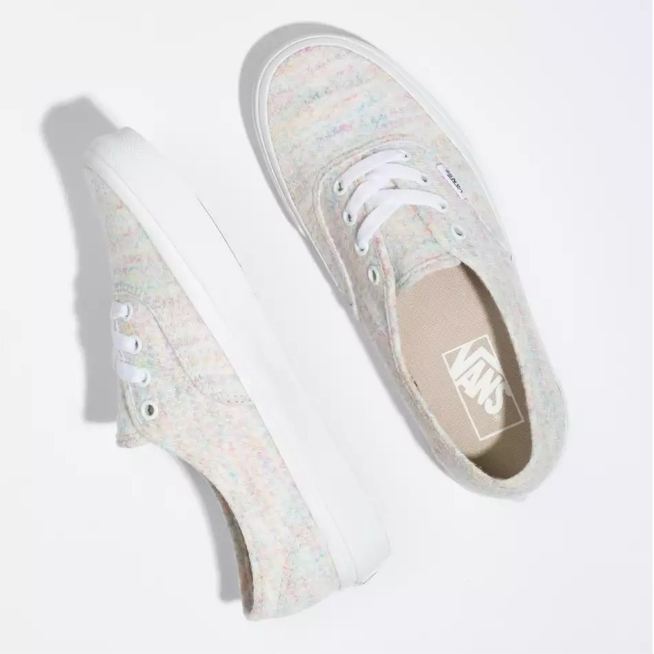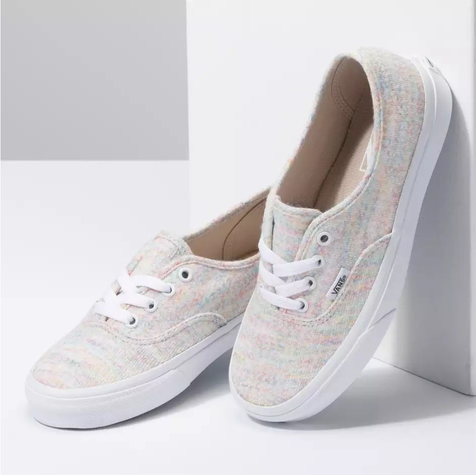 VANS RAINBOW JERSEY AUTHENTIC MULTI là một trong ba sản phẩm trong loạt VANS RAINBOW JERSEY. Loạt giày này bao gồm hai kiểu dáng là VANS AUTHENTIC và VANS OLD SKOOL. Thoạt nhìn chúng ta sẽ thấy bảy màu sắc đặc trưng của cầu vồng trải đều trên toàn bộ đôi giày trên nền trắng kem. Nhưng có thể thấy rằng, màu sắc đan xen nhau và thể hiện như nét vẽ của những đứa trẻ. Điều này phần nào thể hiện được sự sáng tạo từ VANS cũng như là sự phù hợp của VANS với mọi đối tượng hướng đến.