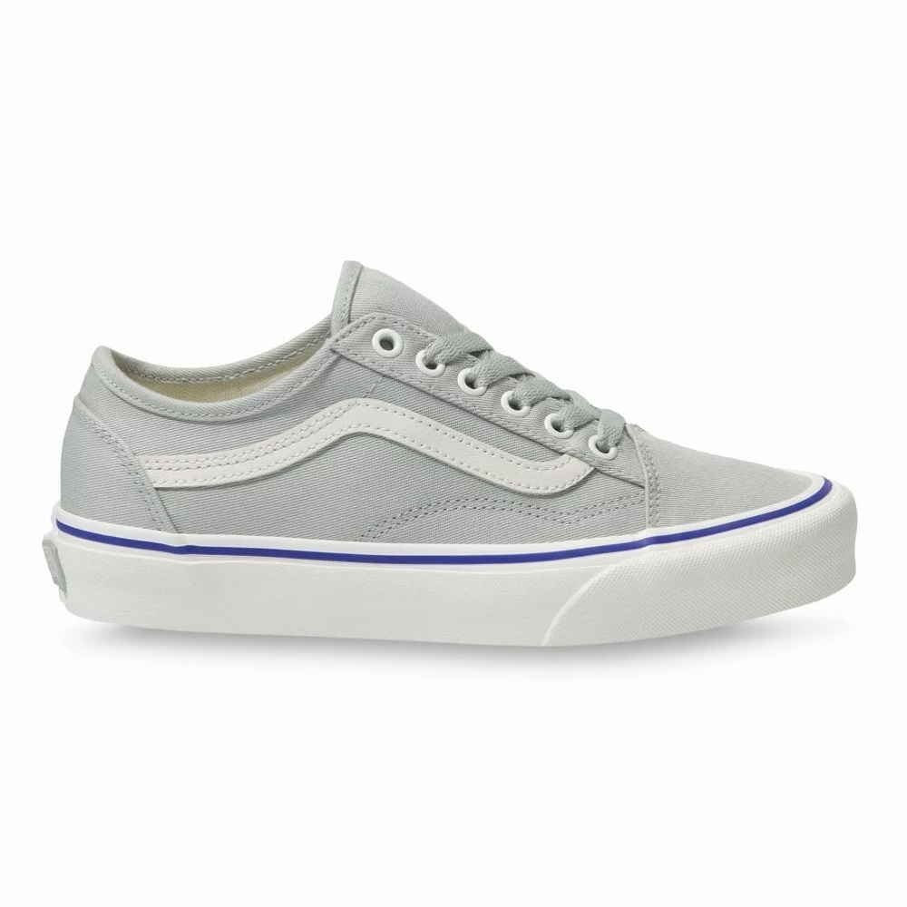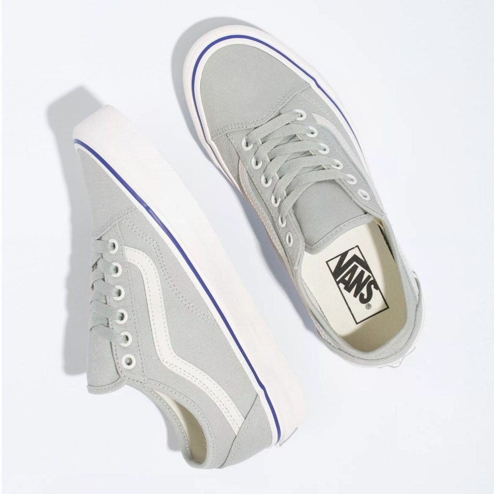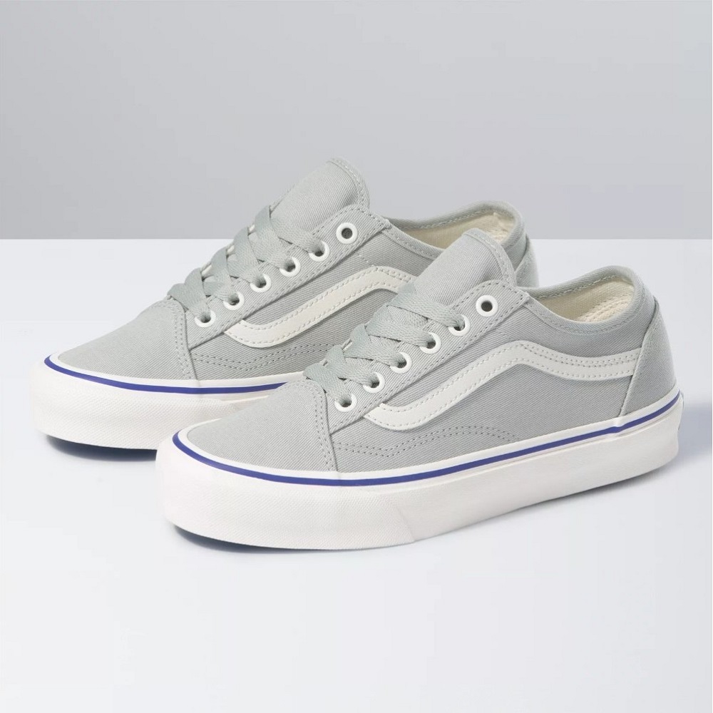 Nay, thương hiệu OFF THE WALL cho ra mắt bộ sưu tập mới lấy nền tảng cảm hứng cũng từ VANS OLD SKOOL. Bộ sưu tập mang tên VANS RETRO CALI OLD SKOOL TAPERED MINERAL GREY với thiết kế tối giản cùng gam màu trung tính cao cấp. Siêu phẩm được VANS lựa chọn chủ đạo màu sắc với tone màu Mineral Grey sắc xám sáng sang trọng, lạ mắt kết hợp cùng đường viền Spectrum Blue bật tone bao quanh phần đế giày. Về cơ bản có sự tái bản chất lượng hơn so với dòng VANS OLD SKOOL ban đầu, thiết kế mới nhất này có lớp lót đế hoàn toàn bằng vải canvas thấm hút và êm chân; cùng logo thương hiệu VANS nổi bật bắt mắt lòng giày.