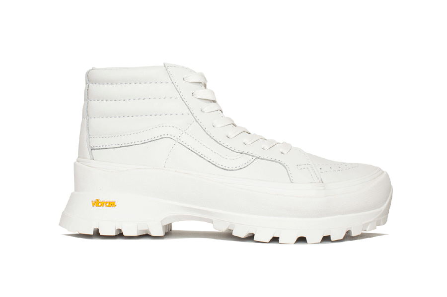 Vibram là một cái tên khá mới đối với Việt Nam, tuy nhiên không phải là xa lạ đối với các nước Châu Âu, đặc biệt là Bắc Âu với những địa hình đồi núi chập trùng. Với địa hình ấy, bộ môn leo núi trở thành một môn thể thao mang tính mạo hiểm và đòi hỏi những phụ kiện phục vụ nó phải thật chất lượng và đặc biệt an toàn. Vibram là nhãn hiệu đế leo núi được sáng lập bởi Vitale Bramani - một vận động viên leo núi tài năng của Câu lạc bộ Alpine của Ý và là doanh nhân đã phát minh ra đế Vibram Carrarmato. Ngày nay, bên cạnh những sản phẩm đế chất lượng phục vụ riêng cho thể thao leo núi, Vibram vẫn tiếp tục phát triển dựa trên tiền đề một chiếc đế giày chất lượng. Lần hợp tác với VANS, cả hai thống nhất lựa chọn hai màu sắc lạ mắt và mới lạ so với Vibram được kể đến là SK8-Hi LX và Authentic LX. Cả hai đều có màu đen hoặc trắng toàn bộ, có phần trên được làm từ da cao cấp với tổng thể thẩm mỹ không quá cầu kỳ. Đối với trước đây, bạn sẽ thấy Jazz Stripe xuất hiện với đường khâu tông màu đối với VANS SK8-Hi LX thì nay đã được tối giản, bổ sung vào đó là nhiều đường khâu hơn tạo ra các chi tiết sọc jazz lạ mắt. Điều tương tự có thể được nói cho LX Authentic. Sản phẩm vẫn tiếp tục sử dụng da cao cấp cho toàn bộ. Cả hai đều được trang bị đế Vibram tạo nên một sự kết hợp lạ mắt, nhưng đặc biệt khác lạ nổi bật, nhãn hiệu Vibram nổi bật bởi màu vàng sáng được thể hiện bên đế giày cũng như mặt dưới đế.