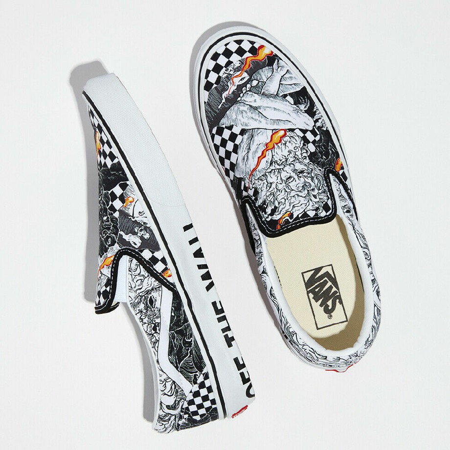 Kết hợp cùng họa tiết Checkerboard là hình ảnh độc đáo của vị thần Zeus huyền thoại đang trút cơn giận của mình qua quả cầu lửa. Chính các ánh lửa bừng cháy đó là chướng ngại vật mà ta gặp trong cuộc sống và vị thần đại điện cho mỗi con người chúng ta. Màu sắc trắng-đen đại diện cho hai cực âm dương hài hòa, cân bằng trong cuộc sống. Qua đó một thông điệp vô cùng ý nghĩa được đọng lại: Chúng ta làm chủ vận mệnh của chính mình và dù có bất kì khó khăn nào ở phía trước ta vẵn không chùn bước. Sở hữu cho bản thân VANS SLIP ON CUSTOM CULTURE 2018 sẽ làm bạn ngày càng tự tin và thật ấn tượng trong mắt mọi người vì vẻ thời trang nhưng vô cùng sang trọng. Hãy nhanh tay tậu ngay cho mình siêu phẩm độc đáo này các bạn nhé!