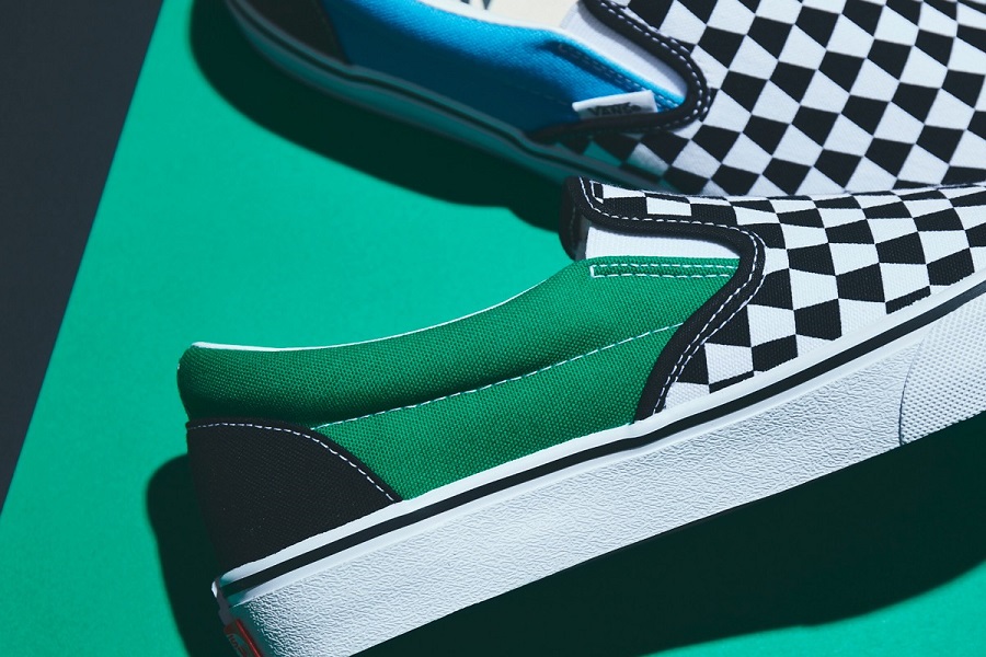 Để cải biến những thứ thuộc về truyền thống là vô cùng khó khăn, đặc biệt đối với một kiểu họa tiết đình đám và là một mẫu xu hướng kéo dài một thời gian như checkerboard. Tuy nhiên, VANS – OFF THE WALL luôn có những bước đi đầy ngoạn mục. Họ đã quyết định cách điệu cho họa tiết này thành những hình thang đen trắng đan xen nhau thay vì là hình vuông gọi tên là VANS SLIP-ON “TRAPEZOID”. Mẫu hình thang mới làm nổi bật và vô cùng lạ mắt, sự thân quen cũng như hơi hướng khác biệt. Không chỉ dừng lại ở thay đổi họa tiết, sản phẩm còn nổi bật bởi những gam màu không đồng nhất ở hai bên giày. Mỗi chiếc sở hữu hai màu xanh, đỏ và xanh dương vàng, sự phối hợp khiến cho sản phẩm không bị đơn điệu, nhưng thể hiện rõ sự sáng tạo từ nhà sản xuất.