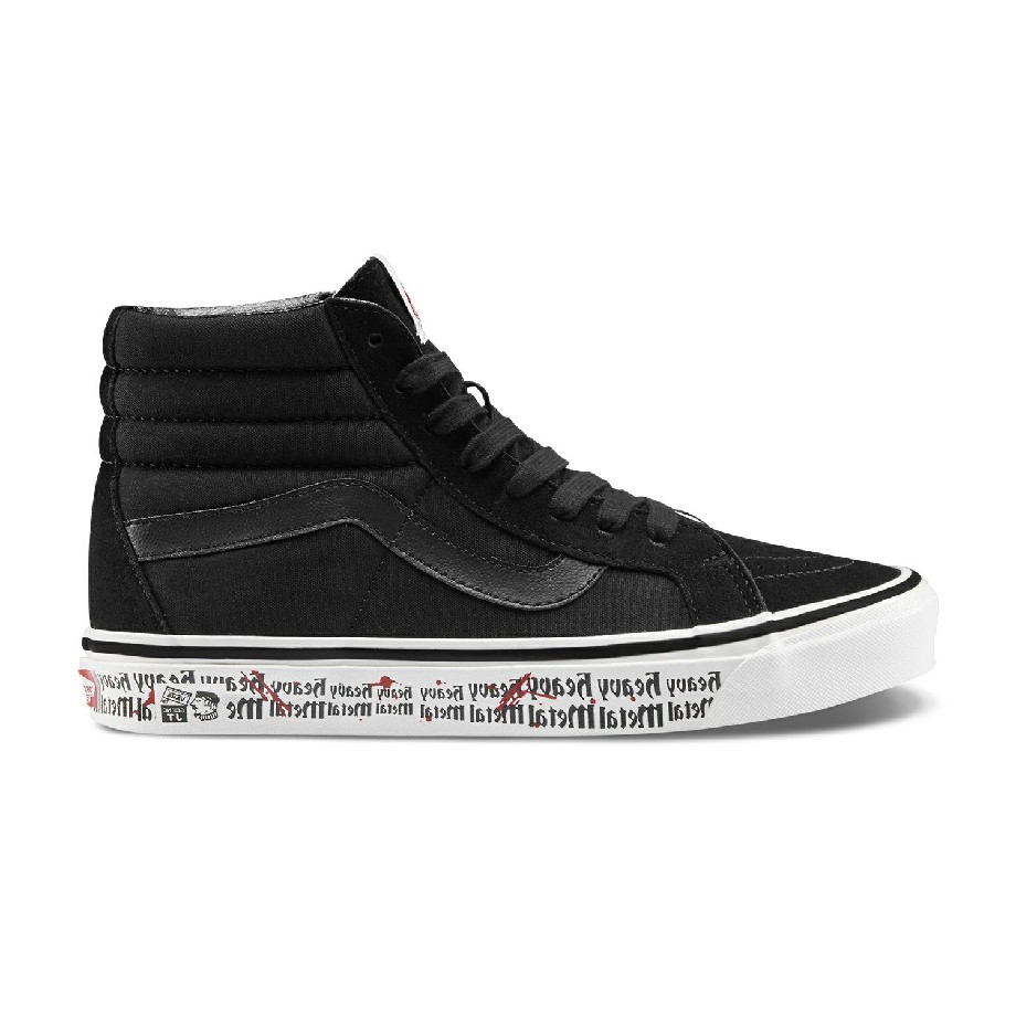 Trong thiết kế độc đáo đến từ bộ sưu tập Anaheim Factory kinh điển, VANS lần này mang đến cho mọi người một đẳng cấp mới mang tên VANS UA SK8-Hi 38 DX ANAHEIM FACTORY HEAVY METAL TAPE. Được kết hợp từ chất liệu canvas và suede bền bỉ qua mọi thời tiết, đế trắng ngà đặc trưng của dòng SK8-Hi, sử dụng đệm lót UltraCush giúp làm giảm trọng lượng cho đôi giày để người mang có được sự êm ái, thoải mái nhất. Nổi bật ở siêu phẩm lần này là phần đế với nhiều họa tiết cùng dòng chữ" heavy metal" sáng tạo, cá tính được nhấn thêm bởi các vệt đỏ cá tính.