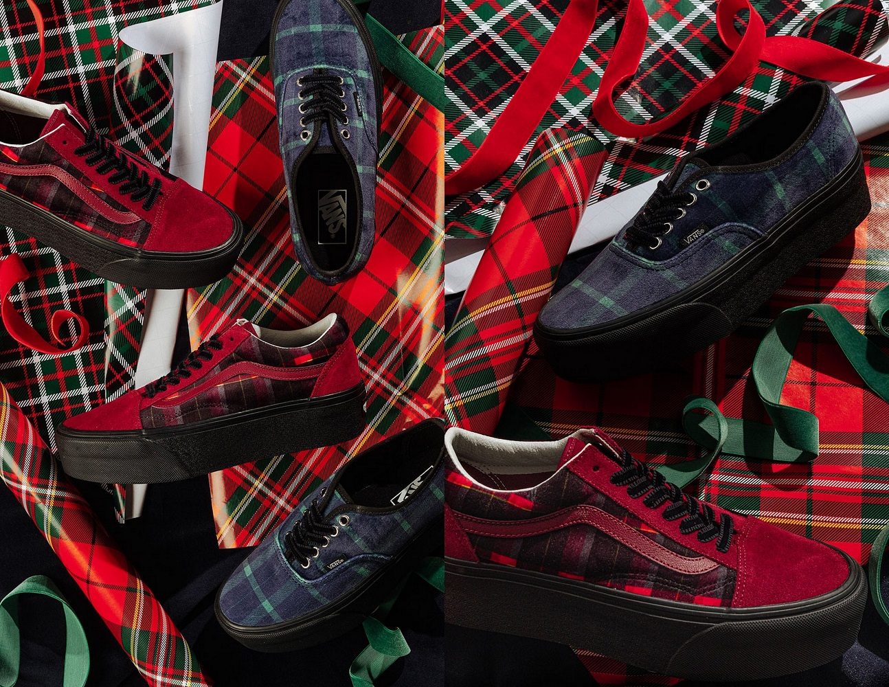 Thừa tháng xông lên sau hàng loạt chiến tích thành công, VANS tiếp tục tôn vinh di sản “Off the Wall” đã định hình VANS trong nhiều thập kỷ và lần này, nó đã tích hợp một phần cổ vũ cho mùa lễ hội cuối năm. Có thể thấy, “Velvet Plaid Stackform Pack” chủ đạo đặc biệt bởi phần vật liệu. Bộ sưu tập sử dụng hai kiểu dáng đã làm nên tên tuổi nhà VANS bao gồm VANS OLD SKOOL và VANS AUTHENTIC với một chút biến đổi khác thường. Đúng như tên gọi từ bộ sưu tập, vật liệu được sử dụng là nhung cao cấp. Với chất liệu vải mềm, mịn luôn thể hiện được sự sang trọng, tạo cảm giác êm ái cùng với vẻ ngoài sáng bóng. Vải nhung đã trở thành một trong những chất liệu vải cố định của thiết kế thời trang, và dễ dàng trở thành trend trong thiết kế sản phẩm. Bên cạnh đó, vải nhung còn có một lớp lông đẹp, kèm theo một vẻ ngoài mềm mại, sáng bóng.Đây có lẽ là một điểm cộng sáng khi nhà VANS sử dụng vật liệu này cho bộ sưu tập chủ đạo cho mùa Gíang Sinh.